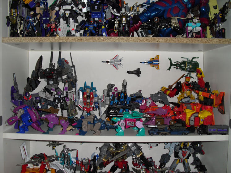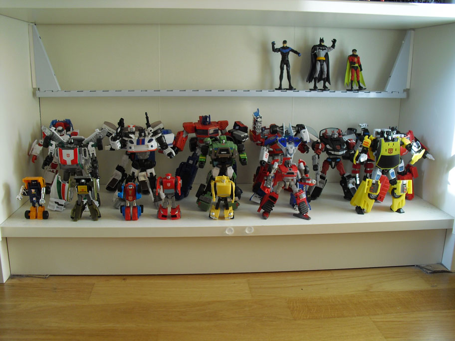 Having recently finished collecting all the g1 Transformers I want it seems like a good time to post some pictures of my collection. I started off with g1 - particularly animal transformers and the reissues, then got tempted by Classics, then into other lines such as Marvel Universe and more or less updated versions of everything I wanted as a kid. I haven't got most of my reissues on display anymore, but here's a few pictures from about 4 years ago when I did. This when I was a carefree bachelor and had more space than I knew what to do with! I also have quite alot of Star Wars Transformers which are also in storage now. Last edited by Primacron; 01-23-2014 at 02:48 PM.. |