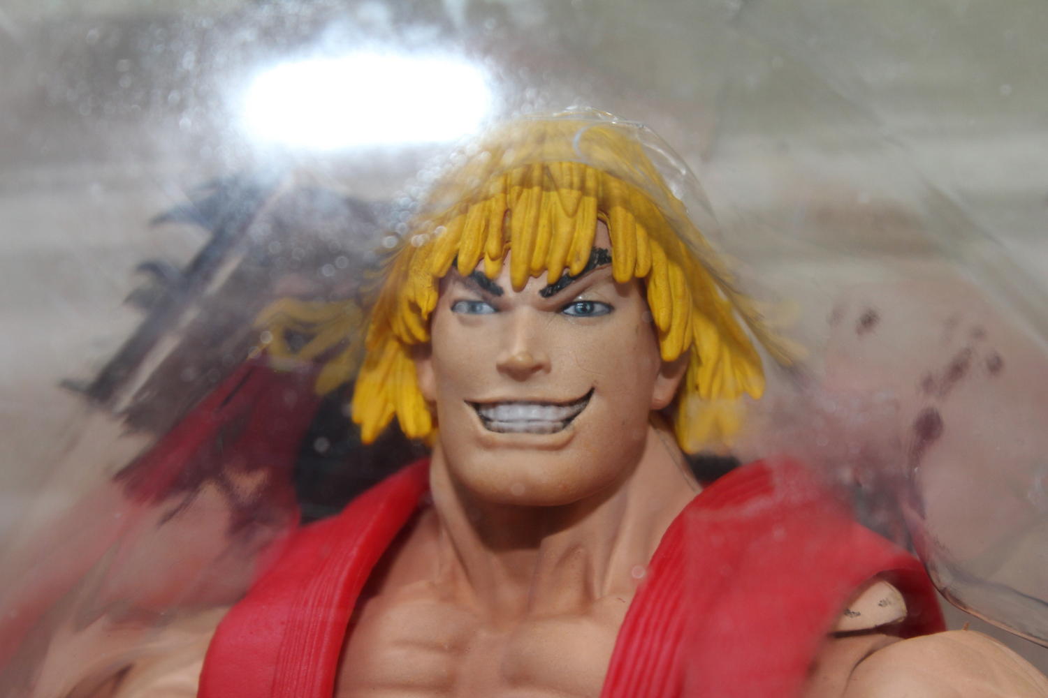 I got this NECA Street fighter Ken recently from eBay and then I found its packaging is so different from what I have seen before. And the face of Ken is too clean... I mean there's no black linear on his mouth and chin. I doubt this is a fake one...