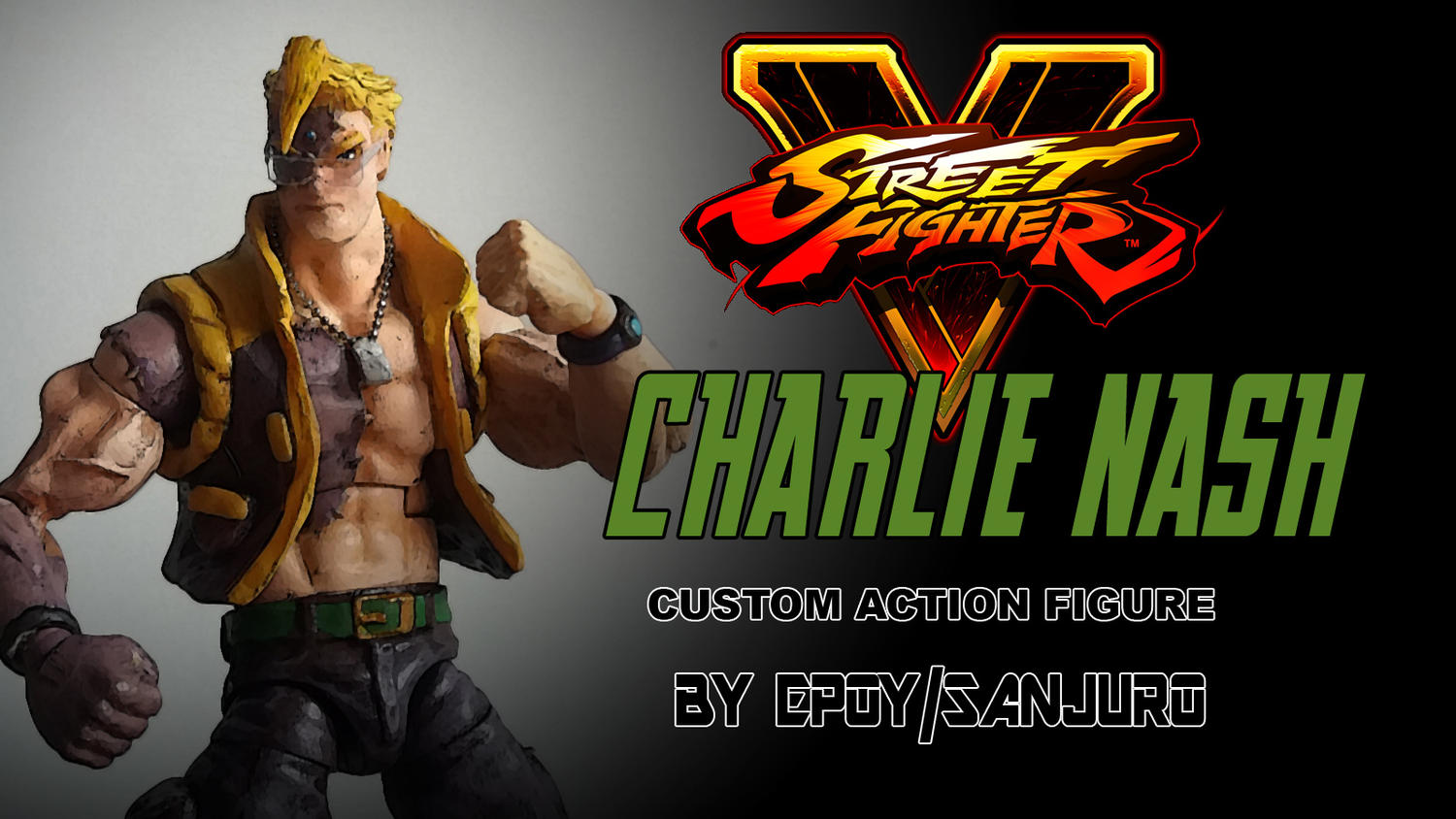 Custom figure of Charlie Nash based on his Franken-Nash Street fighter V appearance. Base body WWE figure by Mattel, head from Young justice speedy also from mattel. The rest are handmade. Be sure to check my youtube channel: Epoy toy to see the video of this figure