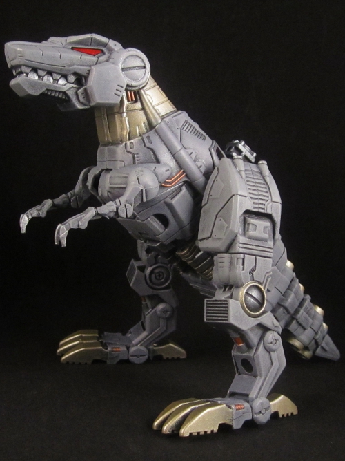 FINALLY! I finally painted my Classics Grimlock. Now that I have a voyager FOC Grimlock, I can replace this figure. Just did the usual, flat black base coat, dry brush silver and then dark and light grey, and brass, gold, and some reds.I did not paint the head and the red jewel on the chest.