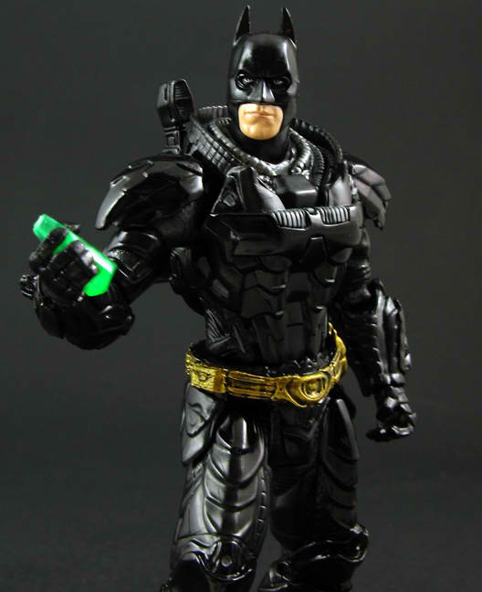 Batman can also wield his sonic cannon and augmented riot shield/knuckles. He also comes with an unmasked movie style head and the last ditch effort, some Kryptonite. STAY OUT OF GOTHAM CLARK. This is Batman's territory!