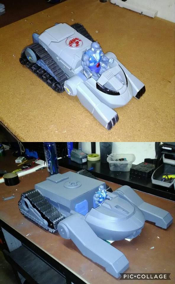 The tank was 3D printed the tracks were bought from another site with motors its remote controlled the tiger and cheetara are the Mexico downscaled figures and I'm working on getting them articulated so that they match up with the Mattel line.
