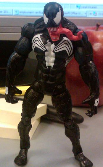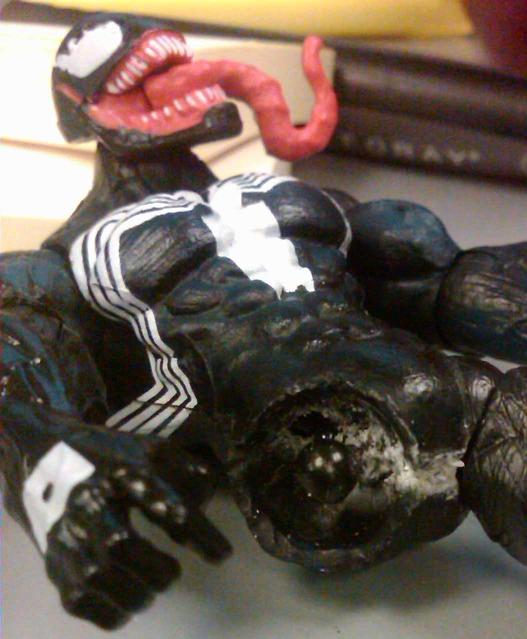 I cracked the lower torso and inserted the T-bar from the MLS Venom to give him articulated legs.