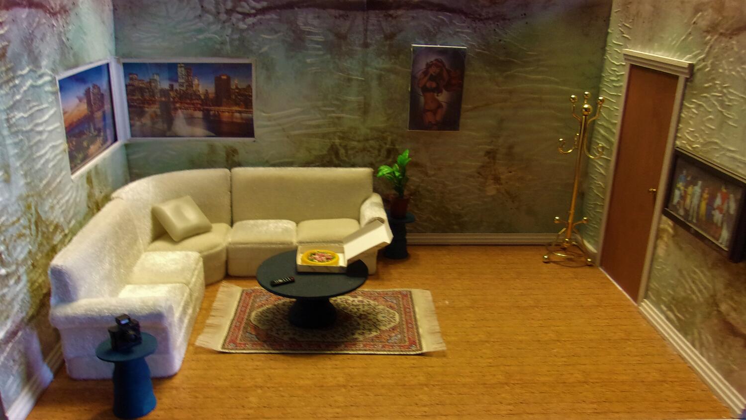 Hi guys, I made this dio about 2 yrs ago & just now decided to post some pics of it. Consists of foam board, wall paper & floor sheets, some wood for the window trim, door and floor trims. Got some of the furniture at a dollhouse shop & made the tables myself, got images of NYC & MJ via google. If interested in it & many other items that I have for sale, plz go to my ebay site at eduardozombies1.