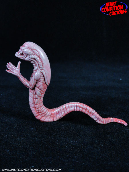 Remember the Aliens Arcade Game from 1990? It throws all kinds of crazy things your way, including this guy, the Chestburster Mutant. A human mutant/zombie thing that had the hatchling come out of its back and attack you. Crazy stuff. My goal was to pay homage to the game sprite, but also make it a bit more realistic looking. I took the upper body of a NECA Left 4 Dead Smoker, and the lower body of a NECA Predator Dutch. The giant back growth is an alien egg accessory from an Alien Resurrection Ripley figure, and the chestburster is from an Alien Resurrection Call figure. The egg was attached to the figure, and I cut up the shirt on the Smoker figure to fit over the egg and to look tattered. I sculpted on the head and arms to give him more growths and boils. The chestburster was repainted and can fit in the egg and be removed. It also has a bendable wire installed in it so it can bend forward inside the egg to appear as if it’s lunging at its victim. Then I painted the figure, using dry brushing to bring out the sculpt and trying to bring in elements from the game sprite, with lots of blood spatters randomly all over him. Then I just added some glossy clear coat for that wet, gross look and now the Chestburster Mutant is ready to take down anything in his way! Check my site for the "back story" I wrote to explain how the chestburster mutants come to be.