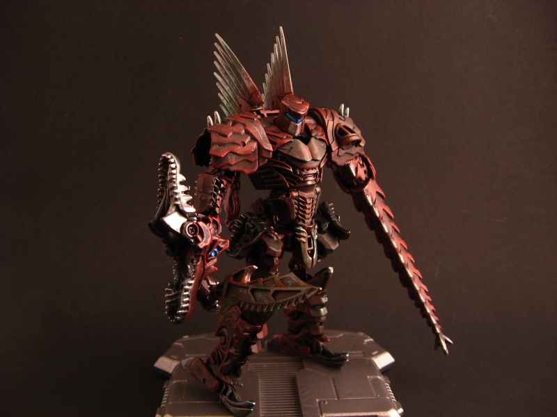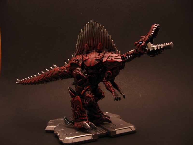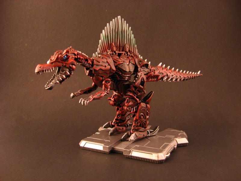 So, after seeing AOE a couple of times and grabbing some good images, I set out to try the Dinobots a second time. Here we have Scorn. In the film he's a beaten up reddish rusty color, with some silver tips and highlights. Add in a blue translucent energy blast and he's done! Also I'm experimenting with lighting to try and capture his textures. Thanks for your time!