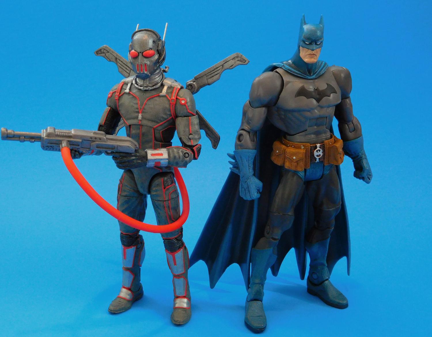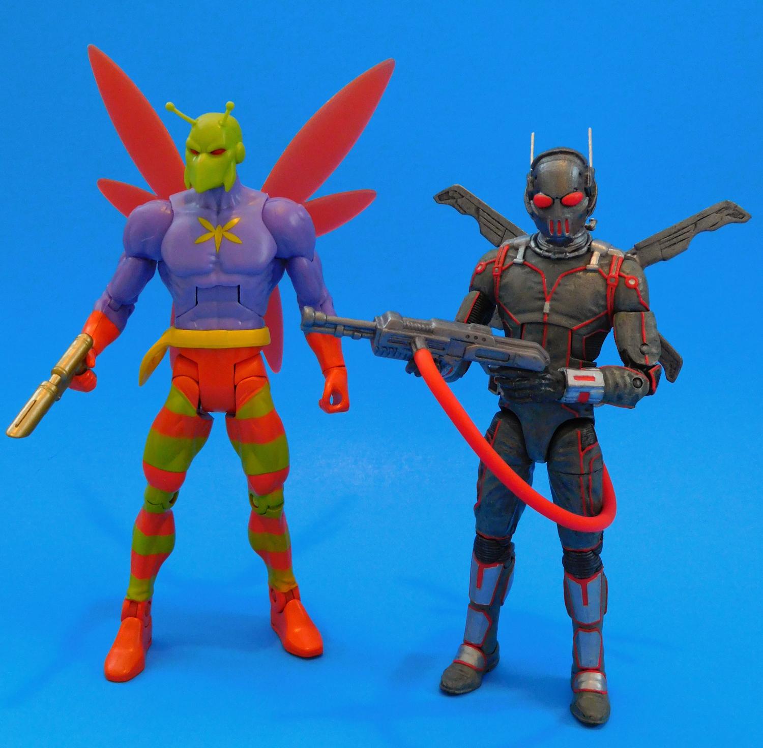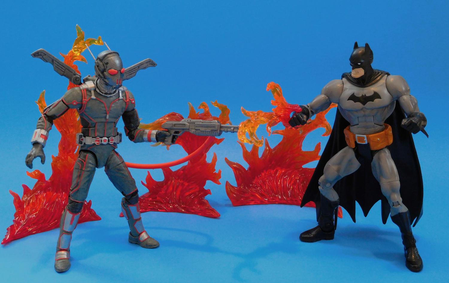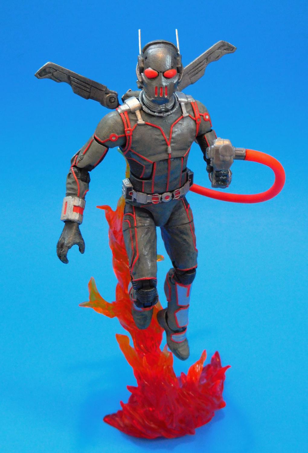 If you do a Google Image Search on Firefly, you'll find he doesn't really have one definitive, classic look. A lot of his suits are all Grey or Silver and the helmet usually has antennae, bug eyes and vents at the mouth. There is lots of room for interpretation. At first I was going to use Orange paint to break up the monotony of the all-grey costume, but I wasn't crazy about they way it turned out and went with Red for the highlights after I found the Red Plastic Hose in my Fodder Bin. This custom Firefly figure began life as a Movie Ant-Man figure I bought on Clearance for $5. I used Milliput to sculpt over the eyes on the helmet and the exposed part of his face. I cut off the little antennae and replaced them with long metal pins. The Winged Jet Pack came from a Funko Legacy Val figure from a video game called Evolve That I also found on Clearace. The Flamethrower is from a generic G.I. Joe (or G.I. Faux as I like to call them) and the Flamethrower hose came from a Batman Legacy Mr. Freeze (Irony). I repainted him from head to toe with Black, Grey, Silver and Gunmetal Acrylic Paints. I mixed Red, Yellow and Orange Paints to better match the color of the Flamethrower Hose and used that for all the red details on his costume. Thanks for looking! |