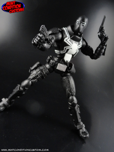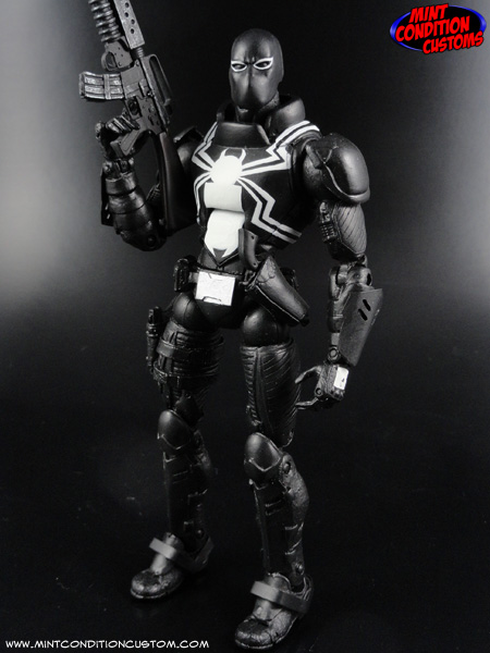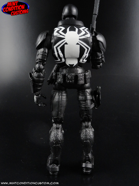 Flash Thompson’s Agent Venom has become a fan favorite character and his absence from the Marvel Legends line seems almost unforgivable. He recently got a Marvel Select figure, but it’s far too big for Marvel Legends scale, and features a more spiky sculpt to the armor. I was going for his more normal look for this custom. Venom was made using the body of an X-Men Classics Bird of Prey Angel, the head of a DC Universe Classics Dr. Impossible, the shoulder pads from a Movie Masters Dark Knight Batman, and a ton of fodder and sculpting. I chose Dr. Impossible’s head, because his eyes already had the sort of Venom shaped eyes sculpted into it. I just had to sculpt over his nose and mouth and paint it all, so that part was easy. The rest was most decidely not. I had to completely cover up his torso, front and back, and sculpt the armor panel line detailing into it near the edge. I had to let that cure so I could sculpt on top of that to get the straps and buckles, and sculpt his collar as well. His biceps and outer thighs are sculpted onto as well, with armor padding that has the same multi-paneled armor as in the comics. I sculpted his kneepads as well to match. I glued the shoulder pads on to try and give them a militaristic look and not detract from the articulation. This forearm and shin greaves are made from sheet polystyrene, as is the ankle armor circling his feet. I did a bit more sculpting over that, adding buckles to the shin greaves and whatnot, and then gave him his belt. The buckle is polystyrene, and the pouches are pieced together from various fodder that I just glued around his waist. I gave him the gun holster strapped to his thigh and added some fodder straps, and attached the gun holster on his belt too. It actually just plugs onto a small screw I inserted into the figure, to act as a ball joint of sorts. So the holster moves around and doesn’t hinder articulation at all. After giving him some heat to pack, I painted the entire thing head to toe and gave him his iconic Venom emblem and Flash Thompson was ready to serve his country as Agent Venom! ![]() ![]() ![]() ![]() ![]() ![]() ![]() ![]() Thanks for looking! Last edited by Joe Moore; 01-08-2013 at 07:29 AM.. |