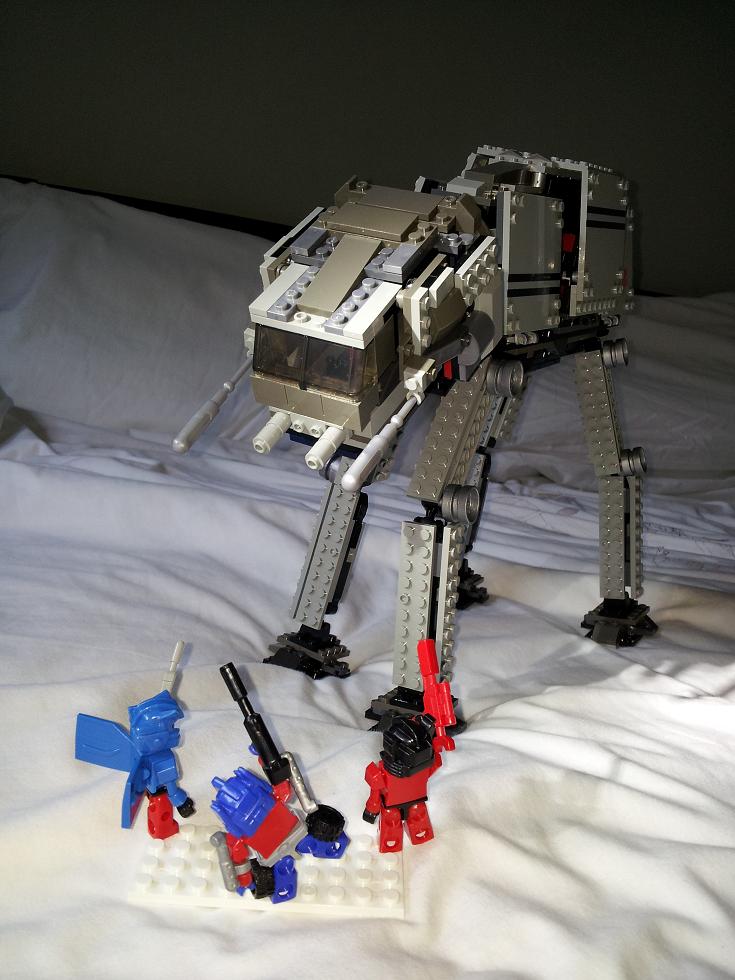 Going to be a Christmas present for my little boy who has recently gotten into lego star wars. This ATAT walker was built mostly using the kreo optimus trailer, and gray parts from other kreo leftovers i had lying around. added some cool features such as head articulation, opening cockpit, etc... to add to the playability. looking to improve the legs and feet but i ran out of bricks. i'm well pleased with the result though.