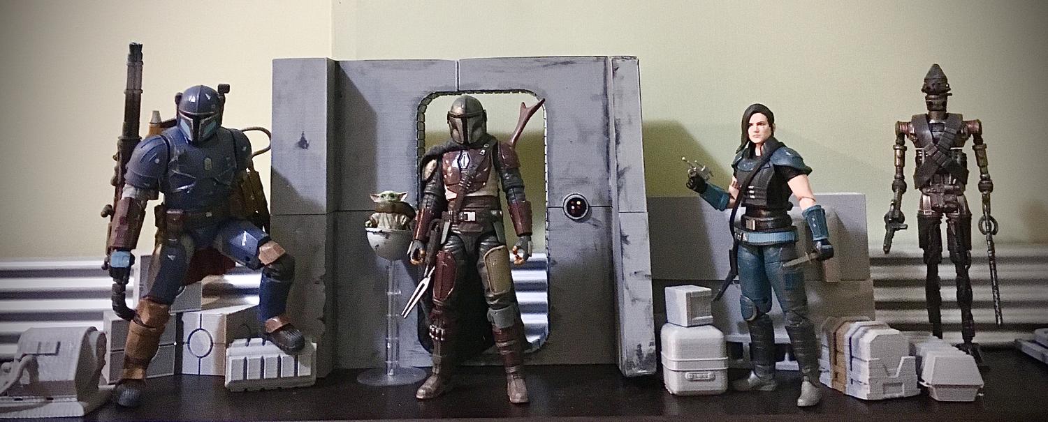 This is my custom Black Series Mandalorian with interchangeable shoulder pauldrons (beskar and sandtrooper) which attach via magnets