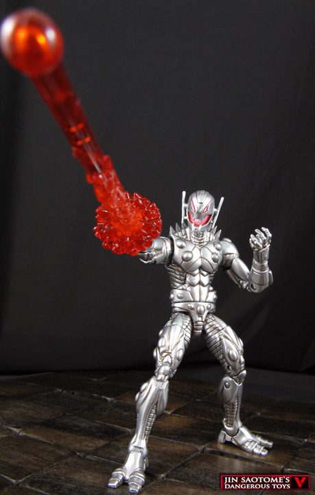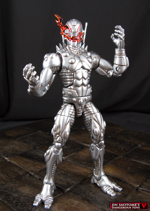 Here's a custom Marvel legends Ultron that's sure to strike terror in all humanity. Based on the Spidey Infinite series Beetle body and Ultron head, the lower arms were changed out with the older stealth series Iron Man and DCD Orange Lantern Lex Luthor hands were used. The entire figured was sprayed in Testors One Coat Lacquer 'Diamond Dust' then detailed, polished, and sealed to look like real metal. I created an energy blast for his hand and a crackle of energy for his gaping maw. The Age of Ultron is upon us!