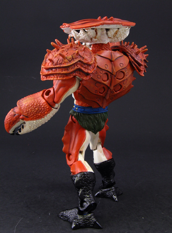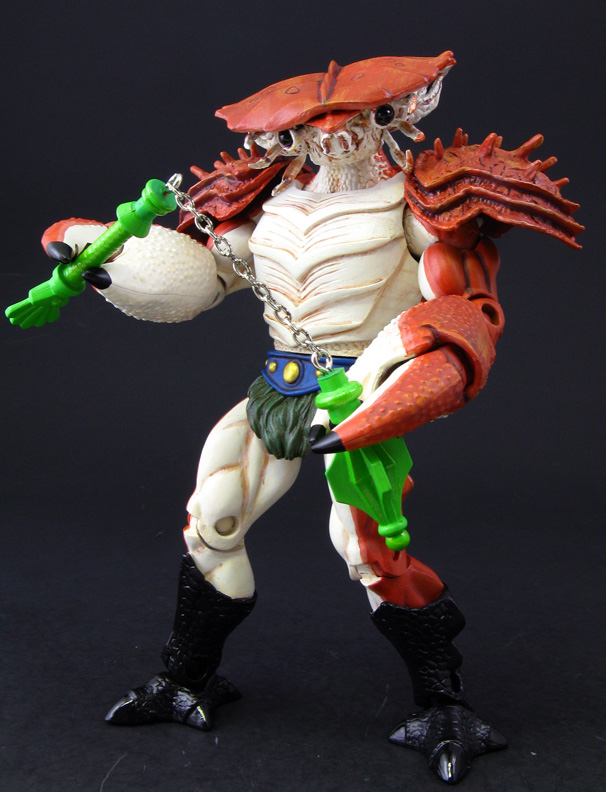Here's my custom Masters of the Universe figure Krakinos the sea-faring warrior with a battle hardened shell. Krakinos was made from two MotU Classics Clawfuls (both arms and back shells) Halo Drone head, ML Annihilus shoulder pads, and various fodder parts. He was given a four-tone crab shell paint job and Clawful's mace turned into a chain-mace.