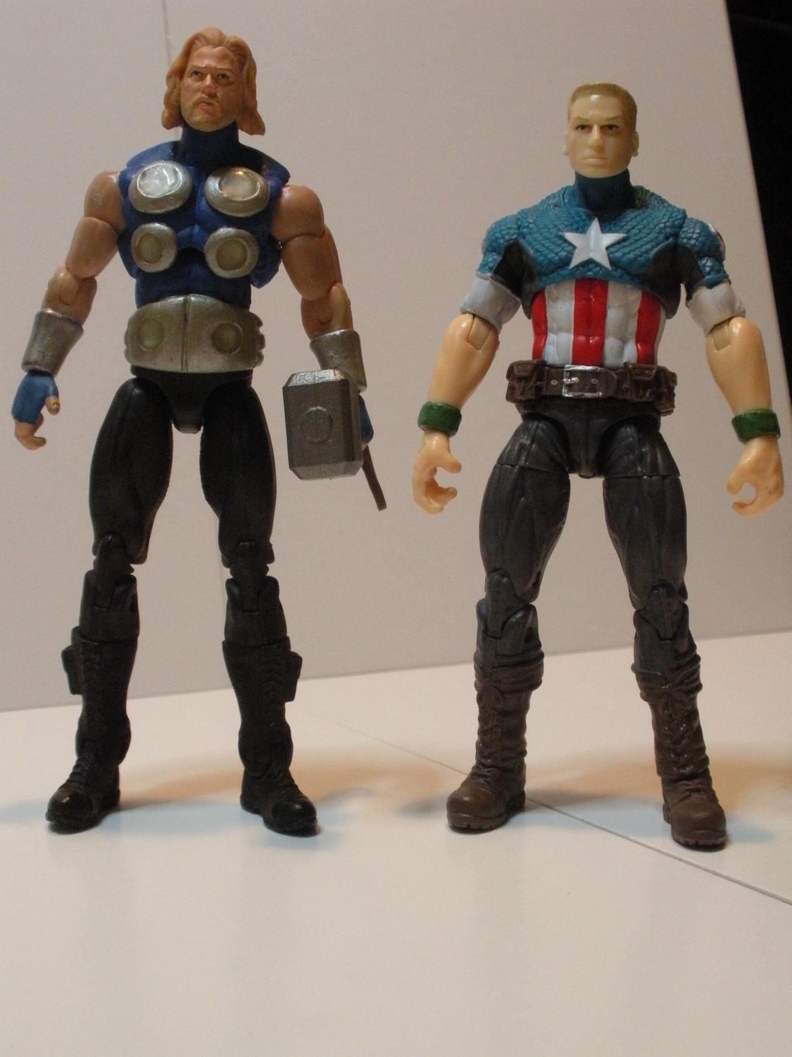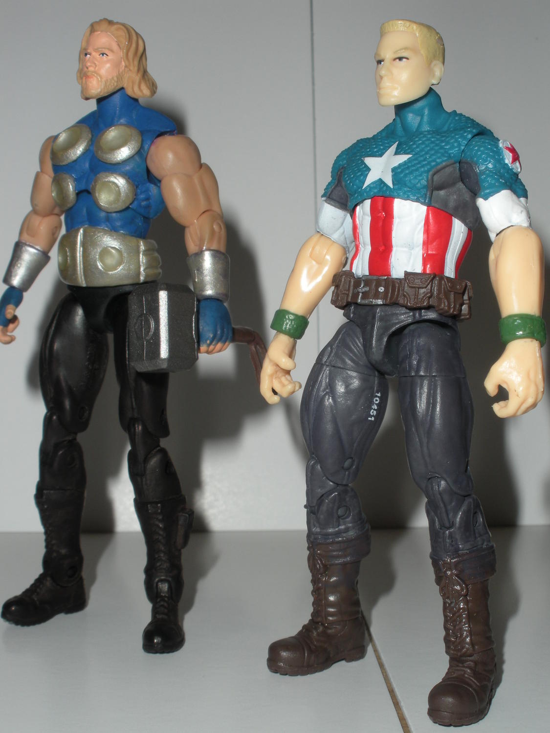 Here's a few slightly better pics of my Ultimate Thor and Ultimate Steve Rogers. It's hard to tell in the pic, but I went for sort of a lens effect in the disks on Thor. I made depressions in the circles and filled them with layers of triple thick glaze. It looks pretty sweet in real life.
