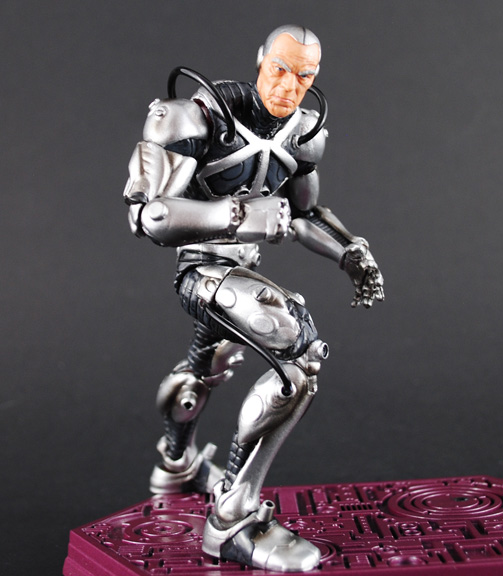 A mob boss nearing the end of his life, Silvermane sought to extend it by transforming himself into a cyborg. Now powerful enough to go hand-to-hand with Spiderman, Silvermane is ready to fight! This Marvel Legends custom Silvermane was made with the head that came with Speed Demon and utilizes a Beetle body with space Iron Man lower arms and feet. All the orbs and nodules were taken down and various sculpted pegs and nodes were added. Silvermane was wrapped up in a chrome silver finish with airbrushed shading and details, aging the face further as well.