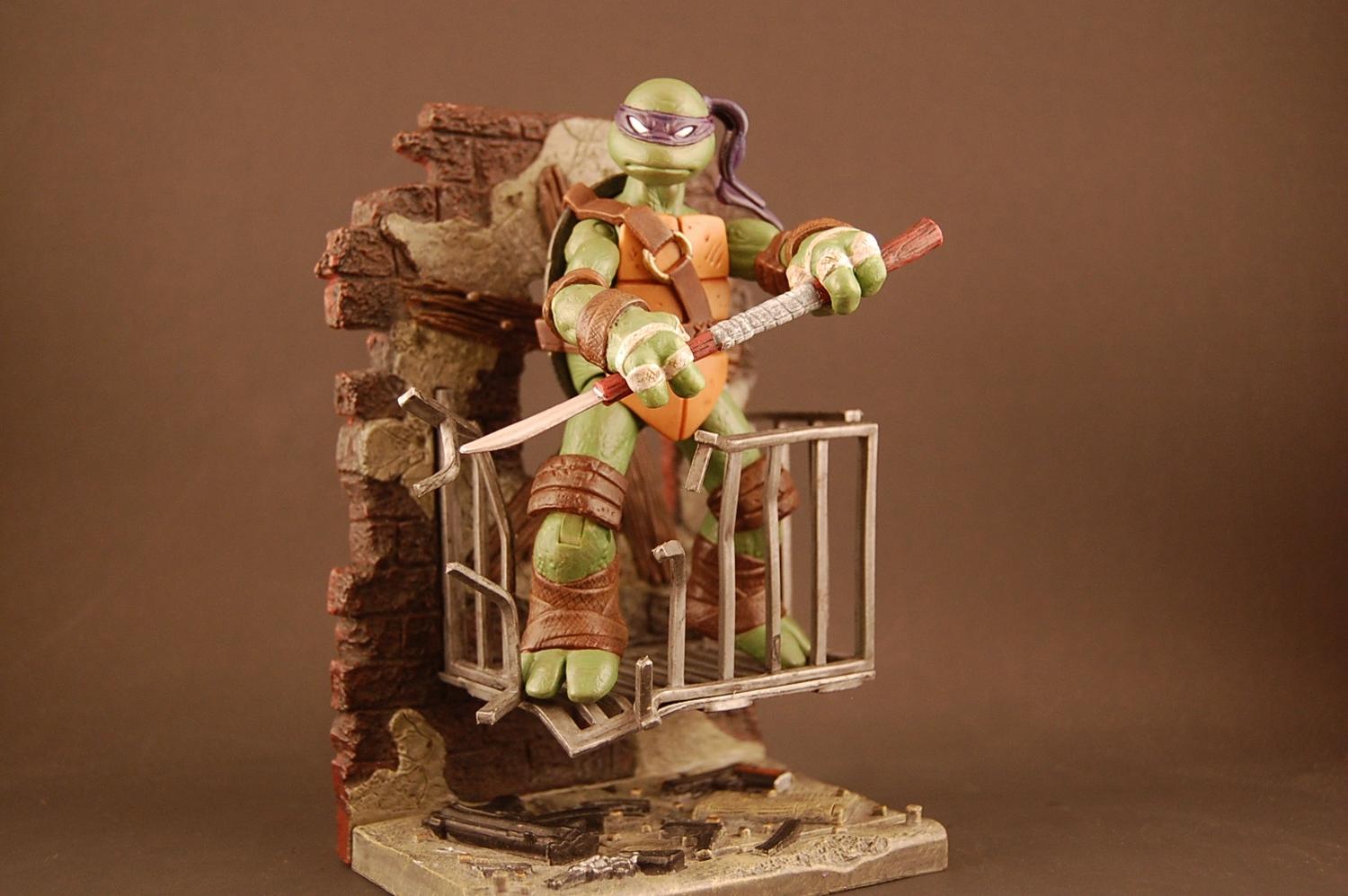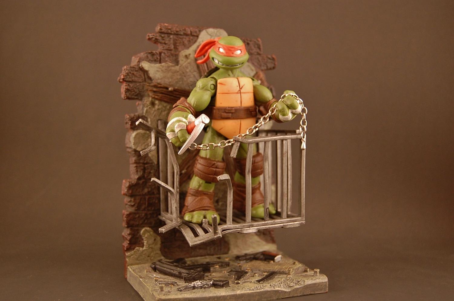 4 stages of browns give the leather a worn yet natural look. Splinter features a totally different color scheme, matching the original show. The detail in his fur, teeth and eyes is superb. His bandaging has been given a dirty, used look. In fact all of the figures have repainted teeth, using white on black drybrushing to bring out detail. All wooden weapons have been given 3 stages of paint for realism. All metal weapons have been painted silver, and all weapon chains have been replaced with real metal chains. Basically every painting technique I know was used here, including spray for the weapons. I hand mixed so many shades of green and brown that this is a totally one of a kind set. Anyway, a picture is worth a thousand words, right? COWABUNGA! ![]() ![]() ![]() ![]() ![]() ![]() ![]() ![]() ![]() ![]() ![]() ![]() ![]() ![]() ![]() Painted with model master acryl, games workshop, and duplicolor paints.