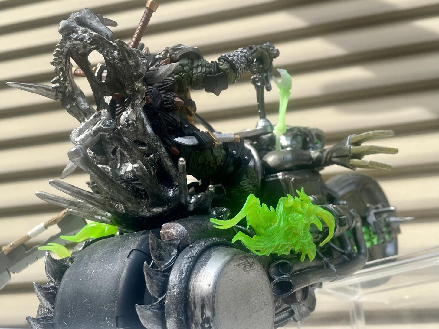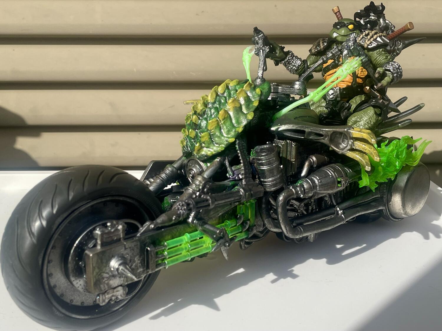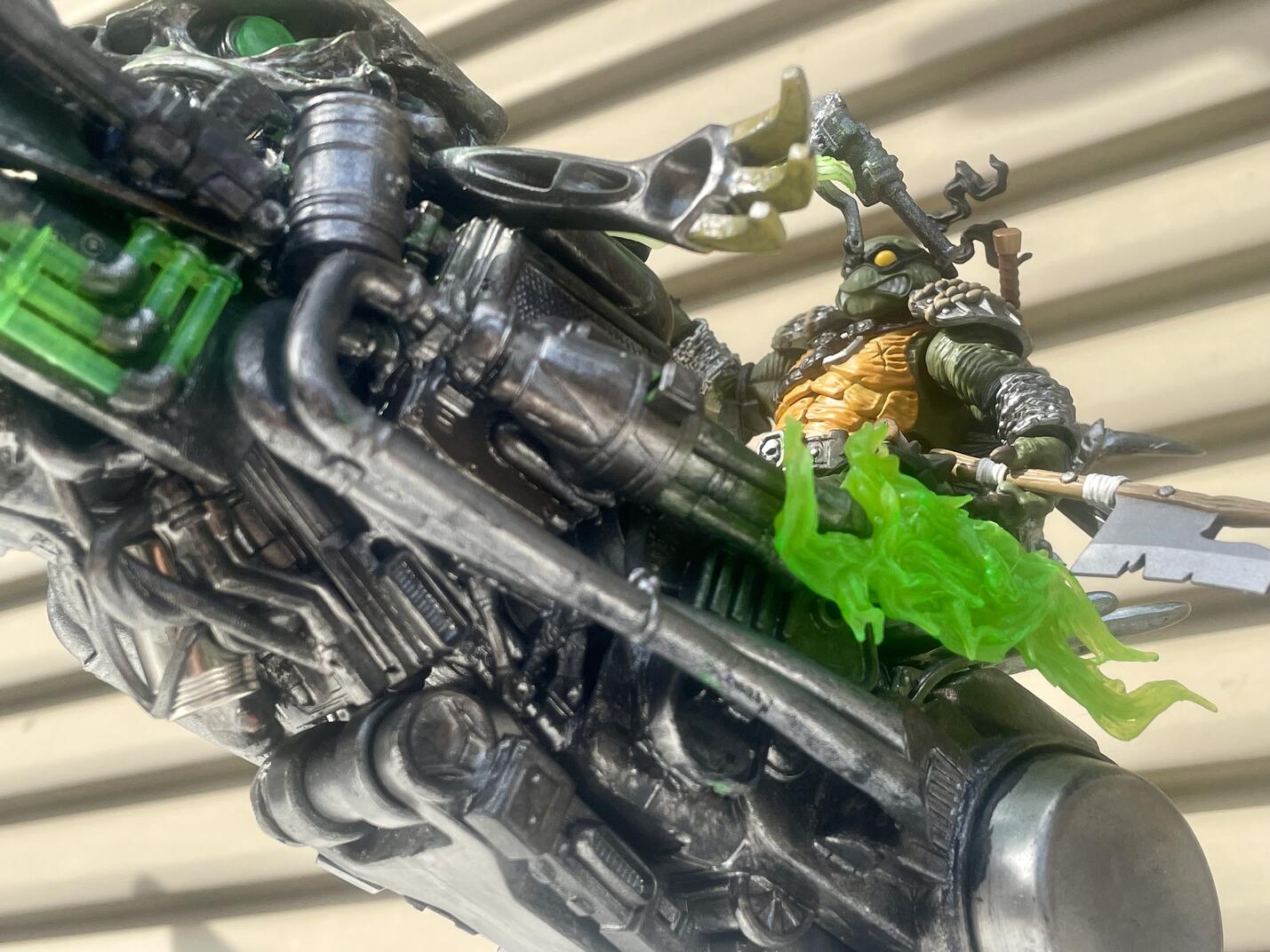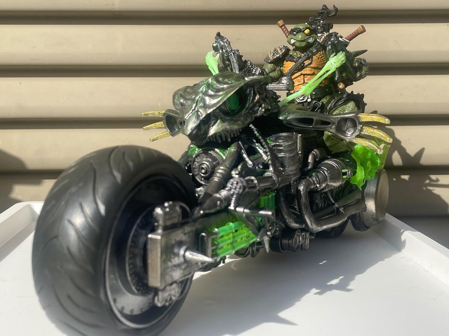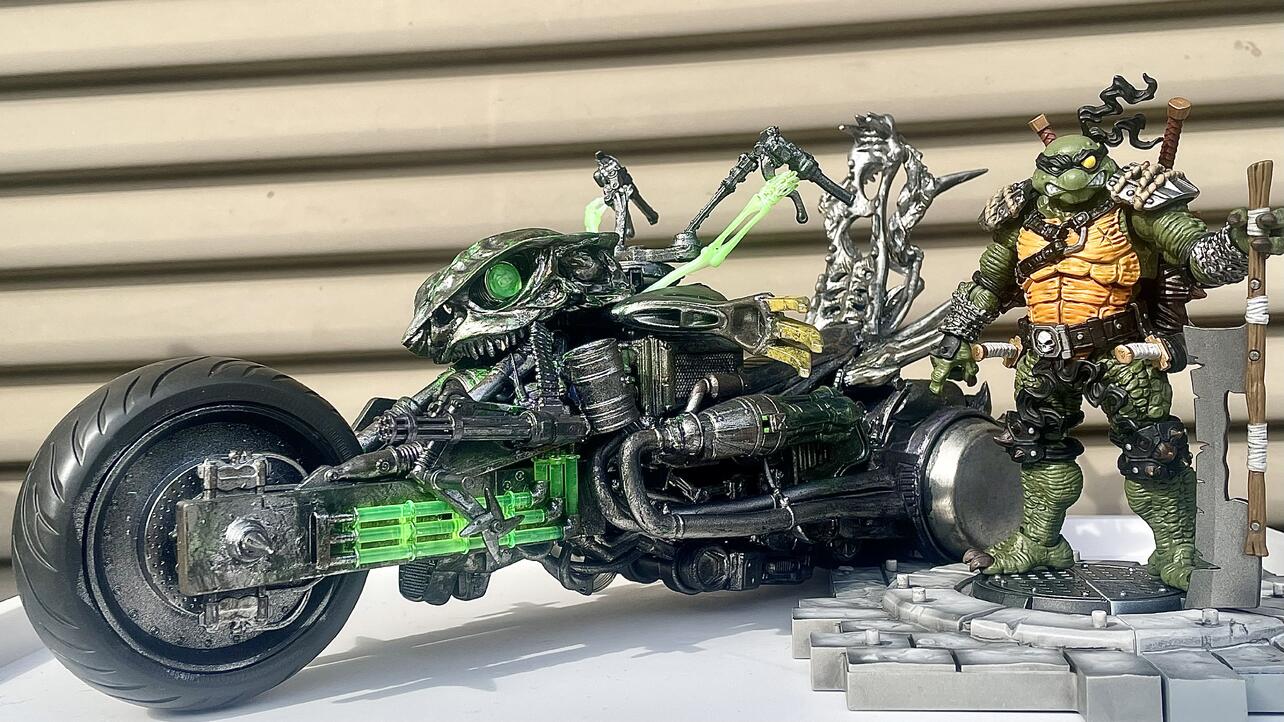 So I created custom vehicles.[past works:https://www.toyark.com/forums/custom...teady-191233/] (Custom vehicle for Bebop & Rocksteady) For Slash's vehicle is cursed monster motorcycle that named Shell Tur' Skeletor. |