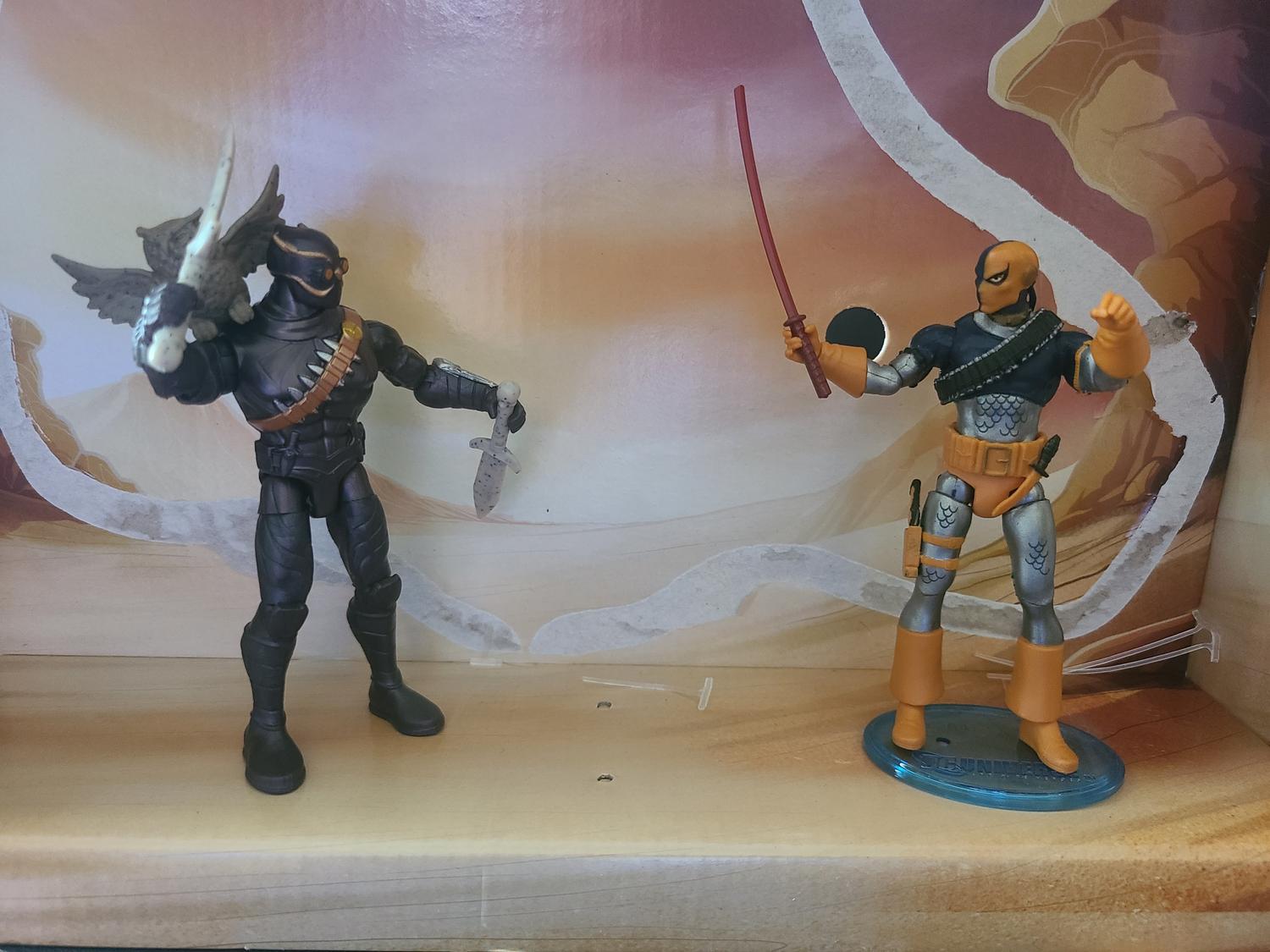 Caped Crusader Talon and Infinite Heroes Deathstroke.