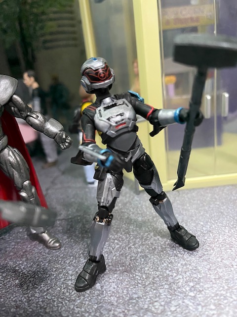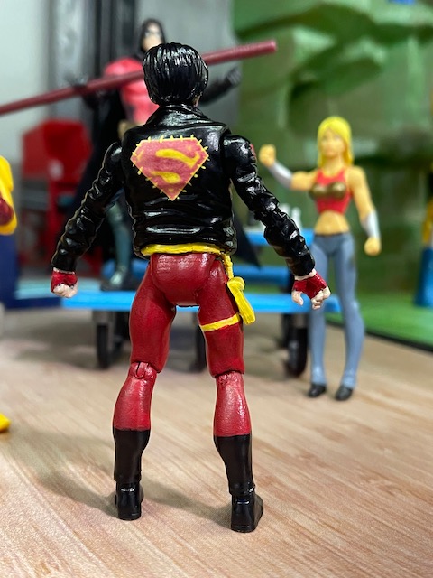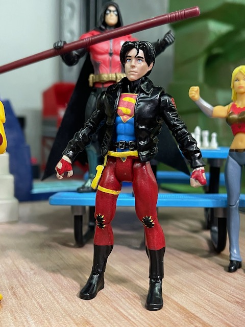 Natasha Irons Steel is inspired a little by the Superman and Lois costume. The Fortnite Paradigm was already such a cool figure! I 3D printed her S symbol and hammer. The Steel custom isn't my work, I got a good deal on him years ago on eBay. Bloodsport from The Suicide Squad is a Fortnite Carbide figure with 3D printed head. I've wanted to do a Conner Kent Superboy for forever. I'm *amazed* that no 1:18 line has ever made him. Anyway, he's a repainted Infinite Heroes Animal Man figure with Ready Player One Parzival head. I'm not completely thrilled with the head choice, but I just couldn't find another that worked. And the scale of it makes him look like a younger guy, which he is. I added some fodder pieces for his belts and side pouch. Lots and lots of detail painting. Sheesh. |