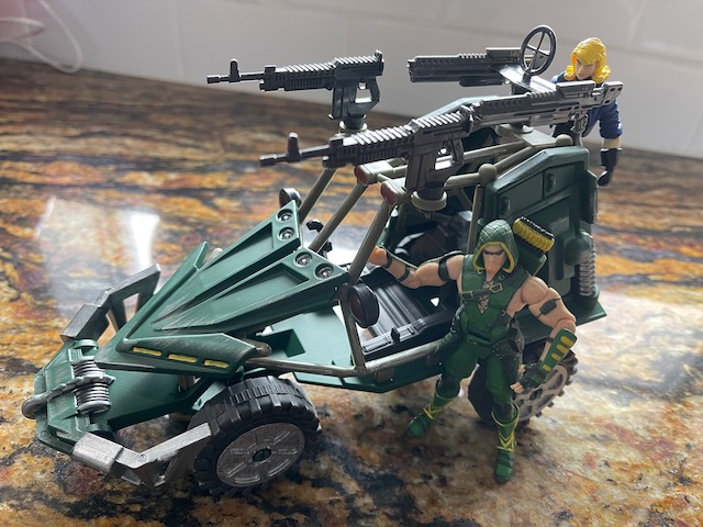I had picked up most of the Final Faction figures at Dollar Tree, and I also picked up the couple of vehicles they've sold. The Arrow ATV is *literally* called "Arrow", and it looks ready for Oliver Queen to add to his arsenal. So I did some spray painting and a little detail work... I think it's the perfect Green Arrow vehicle. |