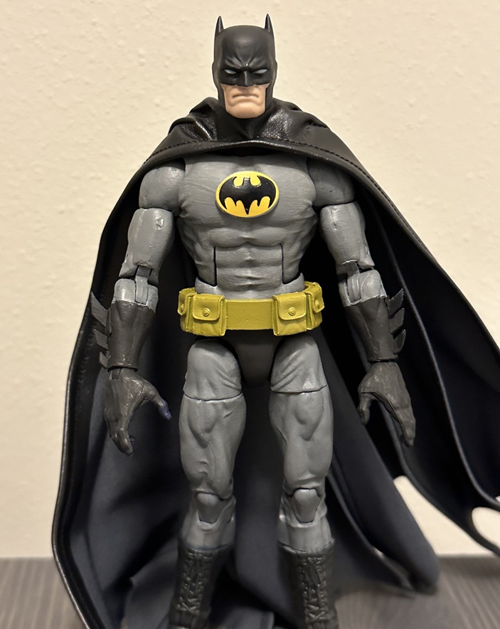 Head - Mafex Batman Body - Blue Marvel Gloves - Fodder spikes Cape - Mezco Belt - Fodder Symbol - McFarlane Animated Batman (Shaved off) |