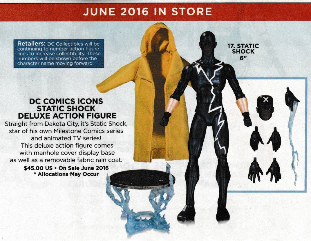 To be fair about Static Shock, the last time they showed him with the coat was 2015, and he had a $45 price and was classed as a deluxe like Cyborg. Last year he was shown without coat, and a $28 price. A new solicitation image without the cloak would have been a good idea, but it isn't like they dropped an accessory and kept the price the same.