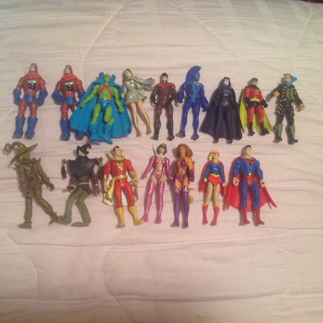 Anyway make an offer on some of them, could sell through ebay if you're more comfortable buying off there since I have yet to buy sell or trade with any of you on here (but looking forward too haha) HAVES - all these are 3 3/4 scale DC figs Adam Strange x2 Animal Man Anti-Monitor Atom Arsenal Aquaman with ball jointed hips from the Starro pack Batman x2 (Gotham Knight version I think and a Dark Blue and Grey one) Batwoman Black Atom Black Canary Black Lightning Blue Beetle (Ted Kord) Boomerang man Captain atom Catman Cyborg x2 Deadshot (Gotham Knight version I think) Doctor Fate Flash (Starro version with ball jointed hips) Green Arrow Green Lanterns x5 (3 Hal Jordans, one clearish green, one with messed up leg for fodder, one normal. One Guy Gardner, one John Stewart) Gorilla Grod Gotham Police x4 Hawk man Hawk Warriors x2 Hush Hush Jason Todd Joker x2 (Purple suit with hat and cain, black tux without hat) Killer Croc Lex Luthor x2 (Regular and in power suit) Luthorcorp soliders x6 (four helmeted, two unhelmeted) Manhunters x2 Martian Manhunter (Starro version, broken leg for fodder or could repair him) Ms. Marvel Nightwing (Renegade version) Ovac Raven Robin Scarecrow x2 (Gotham kinght version I think and other) Shazam Star Sarphire Starro Starfire Supergirl (with headband) Superman (with grey hair black on shield) Spectre? Weatherman Wonder Woman (from Starro) There are also a few other figs I'm not sure of the names of a race that starts with a q from the ocean I think and a few guys that could be answer figures? And like a Black hand and other flash villain I think. Anyway feel free to PM me and hoping to give my old collection a good home! WANTS Pretty much any black series 6'' figure besides Bespin Luke |