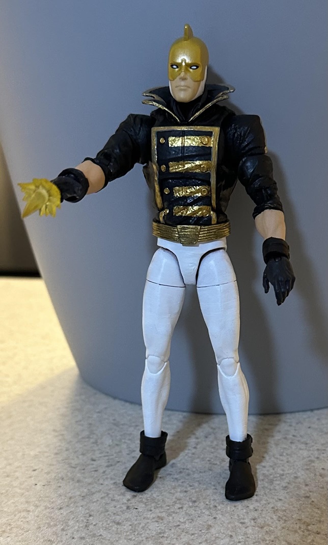 Head - DC Ray Torso - ML Ghost Rider Arms - Gi Joe Duke Cuffs/Belt/Hands - ML Fodder Pelvis/Feet - ML Mr Fantastic Legs - ML Elektra |