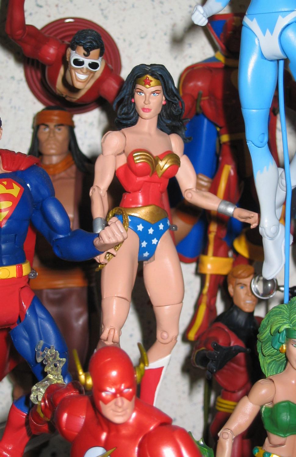 If anything, the buck system worked to their favor. Should they have done more female bucks? Sure, absolutely. But having even only three on hand that work well enough to keep using is good, because it makes it easier to get more female characters out (in concept, at least). As for the heads, I don't really get what you mean about '1 of 4 different,' since each female figure has an individual head mold (sometimes two!), even among figures of the same character. Some of the figures suffer, yes; the Fire I sold off had the infamous 'Donna Troy hip problem.' Zatanna and Black Canary get neutered in the legs due to the addition of the 'real' fishnet stockings. But I like all the female DC figures I have, either due to sculpt, articulation, or in a few cases, both. |
