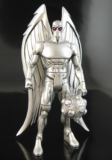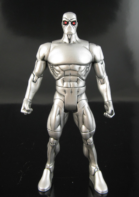 Amazo in the JLU animated cartoon is a force to be reckoned with. Even though he looks like a plain silver humanoid he's defeated the entire Justice League and become an omnipotent cosmic being. Here I took the design from his 4" JLU figure and translated it into a 6" DC Universe style. Amazo was made from a Superman body, modded Major Maxim head, and Major Force legs. His Hawkman wings came from a Spawn Animated Redeemer, mace from a Sigma 6 accessory, drill from a Green Lantern construct, and custom made Superman eye beams that snap on to his eyes using blister bubble plastic and strips of clear plastic.