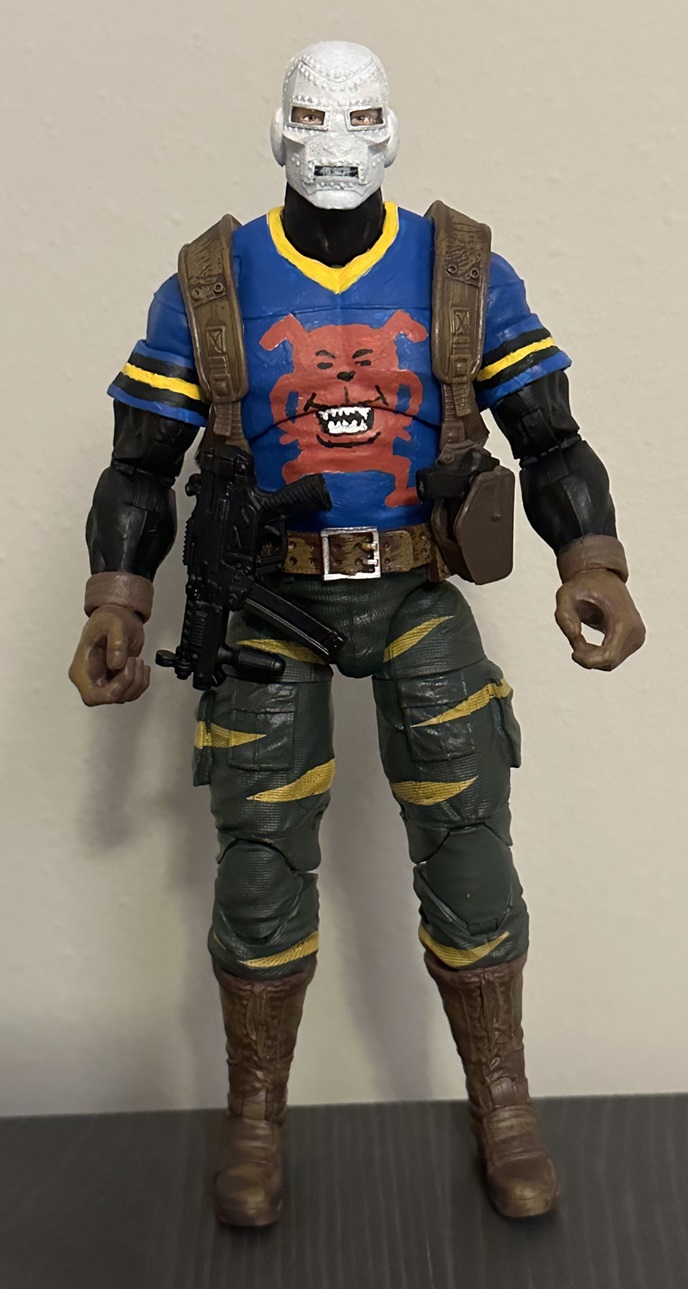 So big Wild Dog fan especially since Marvel completely wrecked Punisher (again). Can't believe we haven't seen a McFarlane yet simply because of the hockey mask lol. This was one of those nightmare everything that could go wrong did customs. Head is best I could come up with for now. Still planning on black outline for mascot and some minor touch ups.