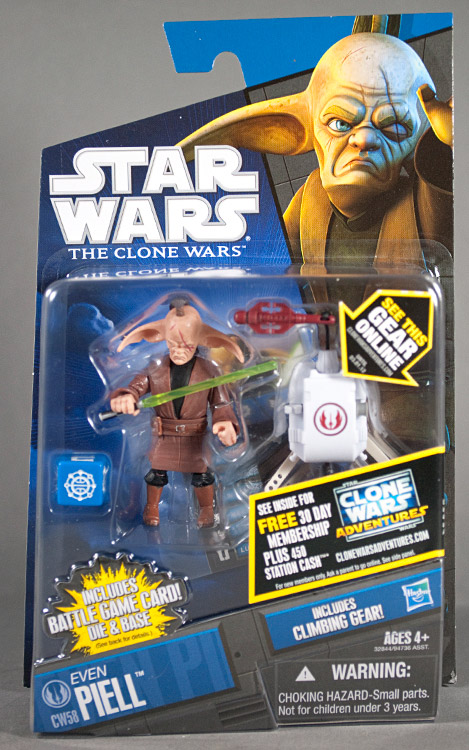 Hey Star Wars Fans! Our next Clone Wars pictoral update comes in the form of Jedi Master Even Piell, who comes complete with a lightsaber and climbing gear. Well articulated, despite its small size, this figure may never be issued again due to his fate in the series, so grab him whenever you get the chance.