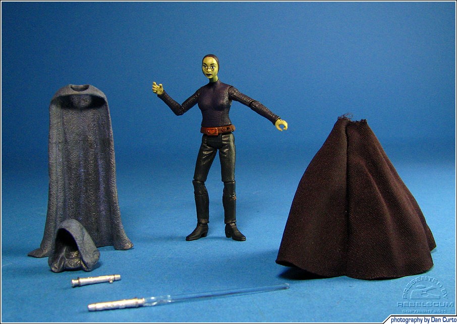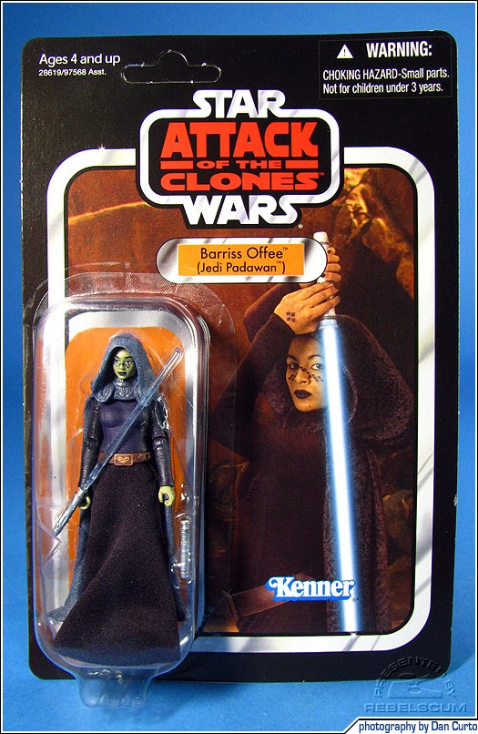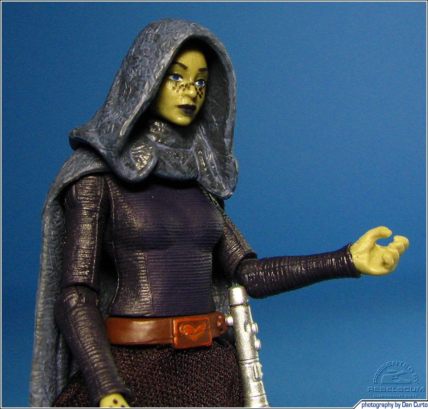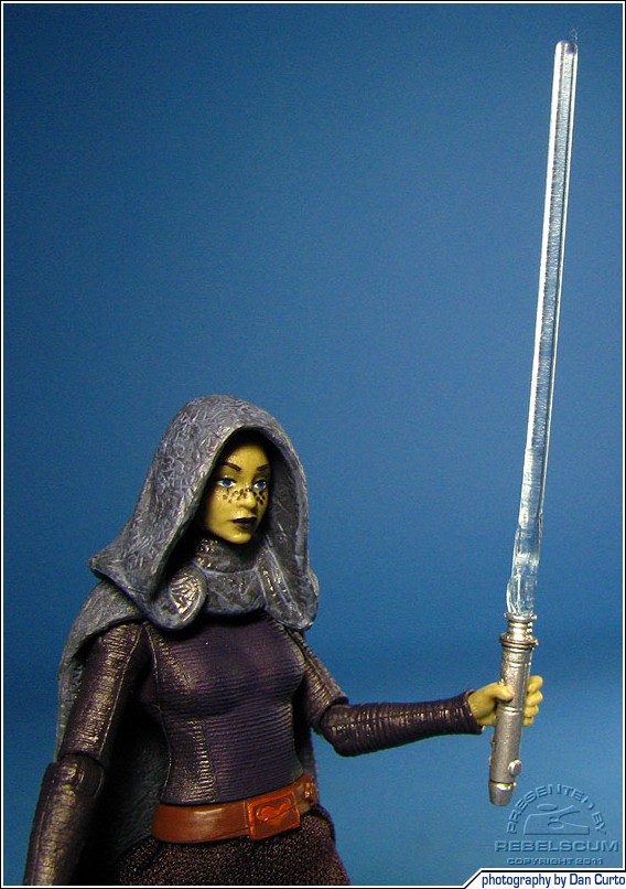 Thanks to our friends over at Rebelscum.com, we have some nice shots of another TVC Wave 7 piece, Jedi Padawan Barriss Offee. Again, this is a much needed update over the original figure released in 2002's Saga line. Original shots of this all-new figure showed it with a soft-goods cloak, but this was cancelled in favour of the sculpted plastic one. The hood and cloak are removable and the figure sports two lightsaber hilts, one lit, the other deactivated. Thanks to Rebelscum.com for the awesome attached photos!