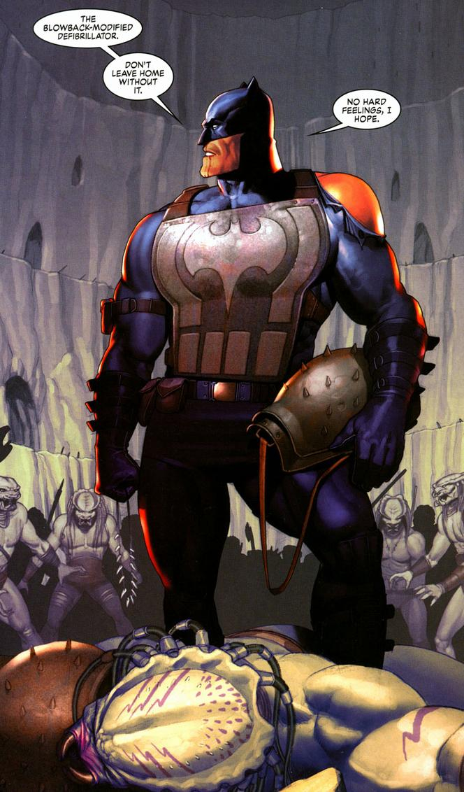 Ever since i read the DC/Dark Horse crossover "Batman and Superman vs Aliens and predators", i always wanted a badass looking armored Batman that would look really dominating when placed along with Predators. Attached a picture from the graphic novel for reference.