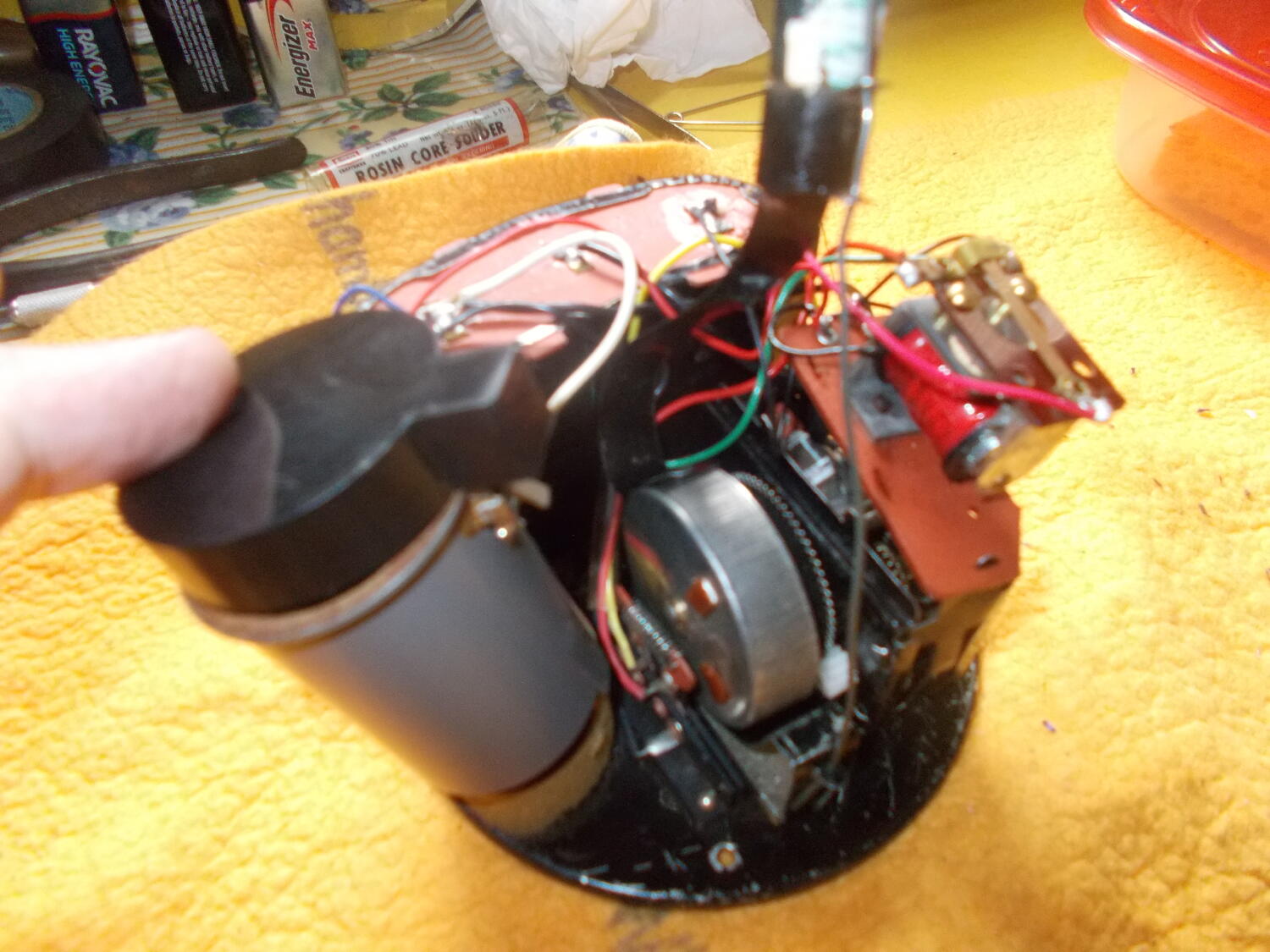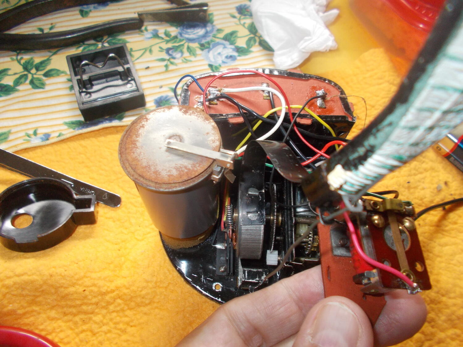 I have a rare vintage 1960s toy that is sound activated. I did not know they even had analog technology like that in the 60s for the toy market. It is made by Poynter Products and is called Charm the Cobra. How it works is when you blow on the toy flute that comes with it, it supposed to activate the motor and the cobra rises up out of his basket. When you stop, he goes back down. I have the motor working. By connecting the battery directly to the motor, I can get the cobra to rise or go back down depending on the polarity. My quandary is getting the motor to activate by using the flute as it is supposed to do. I am not sure how the sound activation works, but all of the parts appear to be there. It looks to maybe work on the same principle as an Edison recorder. I do see a resistor on the side of what appears to be part of the sound activation device, but it is pre-digital age. I attached some photos if it helps. The cylinder in the photos on the left side of the device has what resembles a tiny thin metal disk with an armature which kind of reminds one of a small record player. This is why I thought it may work like an old-timey Edison recorder by the small arm coming into contact with the disk, but that is a guess. Does anyone out there know if it would be possible to fix this and get it running the way it supposed to?. Is there anyone out there in this big world that would have a clue on how to get it fixed?. Truthfully, it seems a little incomprehensible how this little squeaky flute could activate the motor and cause the snake to rise, but that is what it is supposed to do. |
