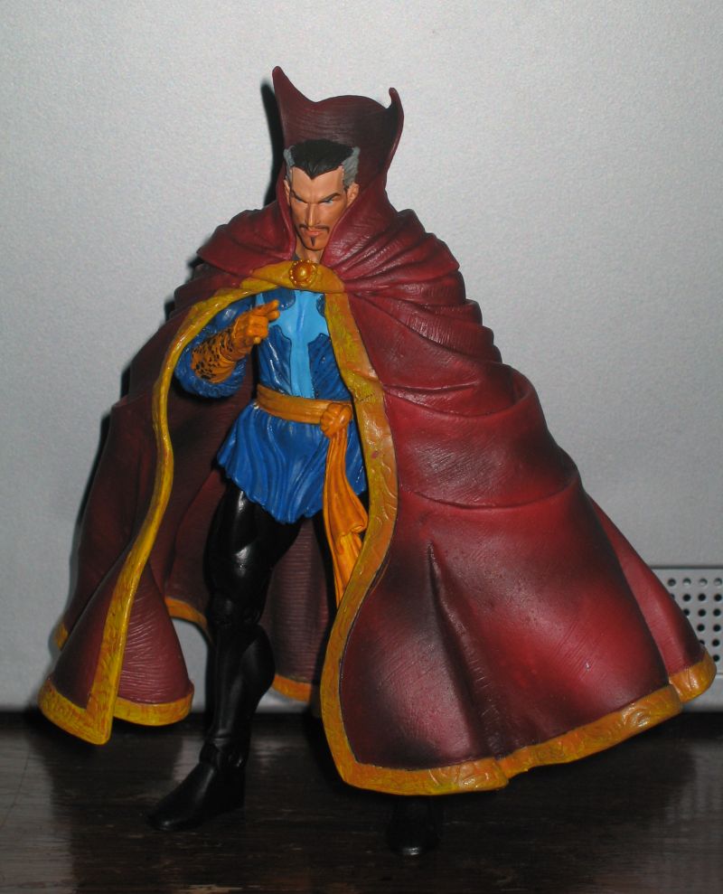 Recipe: Head, arms, torso, and cape ML Series 9 Doctor Strange, Waist, legs, and feet DCUC wave 7 Blue Beetle. I had to dremeled down/mod the DCUC waist to fit under his shirt. |