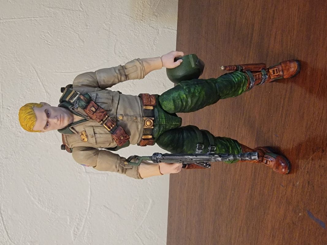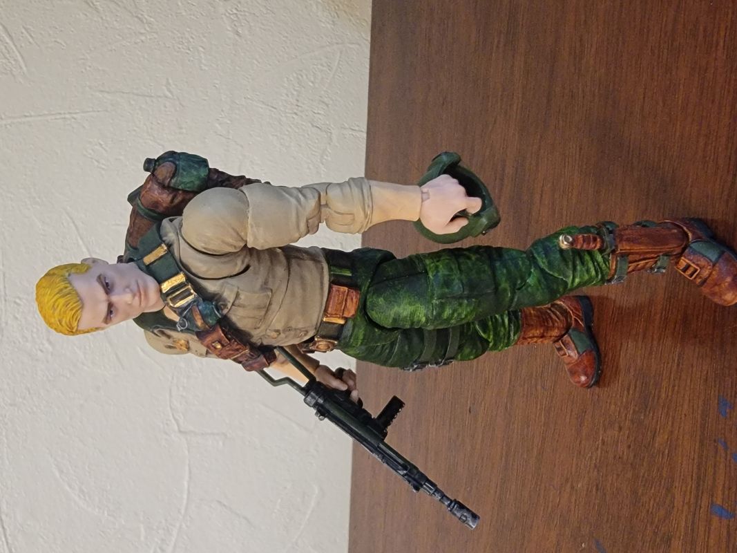 I did this to my Retrocard Duke I wanted him a little dirtier and less plasticky. So repainted his whole body, lots of sanding and making sure there is no paintrub. Repainted his weapons and the backpack.