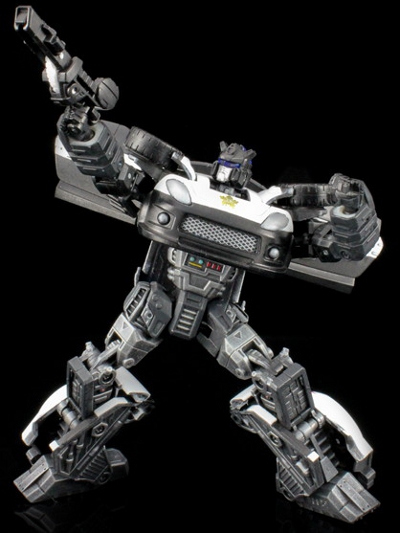 Emergency Vehicle Jazz was made from a RTS Jazz. He was given a flat black base coat and then dry brushed steel, silver, and then white. The light bar is from a Generations Red Alert and decals were applied by fellow customizer Jbarb78. Photos taken by Zildjian.
