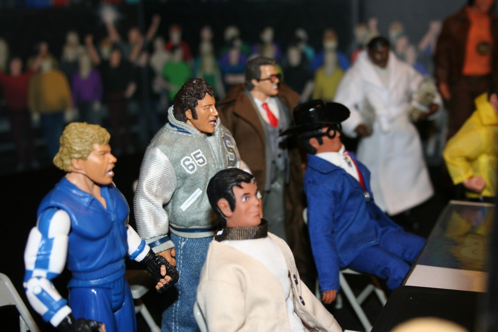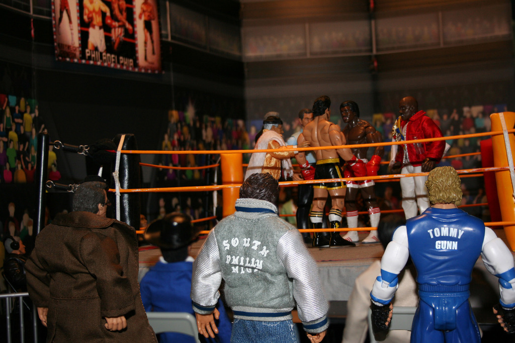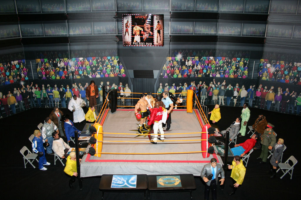 This setup contains a custom ring, the rare prototype belt, a custom banner, and one of the X-Treme Set Backgrounds. Notice the faces in the "front rows", and the judges were 'SUPER' as well. Took me quite a while to get this laid out just the way I wanted it, but the results are for you to enjoy. Thanks for looking.