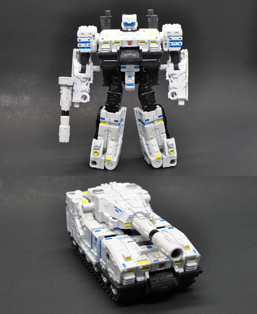 Metroplex features a TON of paint work and Toyhax's label set. There's all sorts of blue windows, metallic sections, hubcaps, tiny yellow shoulder windows, decals (like the MasterMade 3rd party vers) and I think it's a good cross between the Takara and Hasbro Metro in my opinion. He has the 3rd party heel turrets which help him stand and unfold into standing or placement turrets. They don't really attach to anything but look cool sitting on top in battle carrier mode. Now for the bots! I created a deluxe scale Scamper that's also a headmaster! He has a removable roof gun and was created to look like the G1 version. Sixgun is basicsally the same as the retail version but has G1 colors, same with Slammer. Slammer's tower mode can be placed on the deck or my favorite way of display, fold Metro's left arm behind his back and plug Slammer's turret base into Metro's arm port. Sixgun can be disassembled for turret mode. I used Testors Aztek Airbrush, Metalizer, Tamiya lacquers (Tamiya spray Racing White is the color match for Metro's white) and Army painter washes followed by a sealer of Mr Hobby. There's a ton more pictures on his page, just head here: Custom Generations Metroplex with deluxe scale Scamper! |