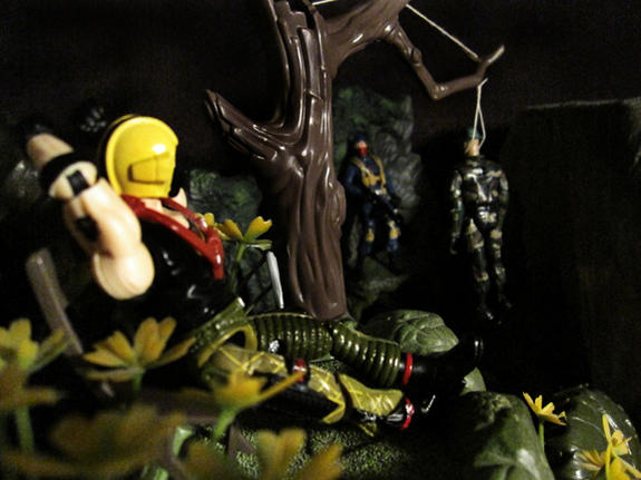 BTW in one of those pics, is that a soldier that Cobra hanged - like a message to others to keep out?
