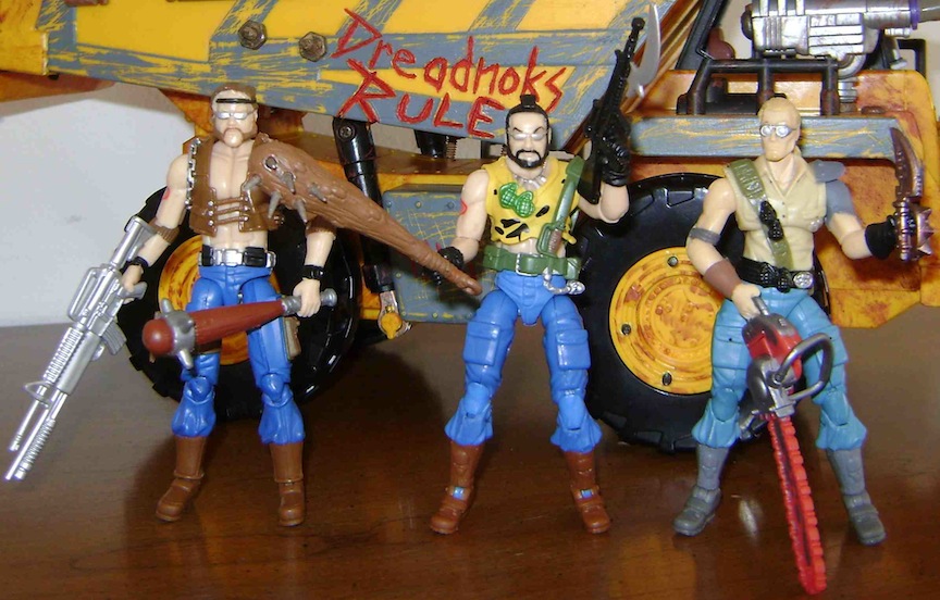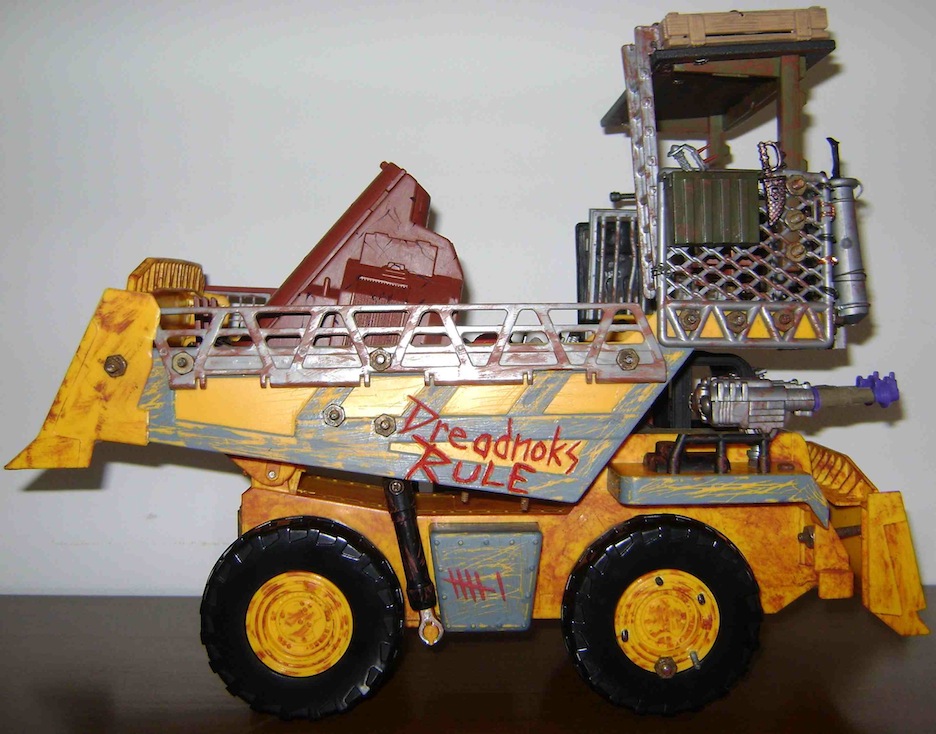 Motto: “Takin’ a dump on the Joes!” The Dreadnok Dumper was originally a GI Joeggernaut that was stolen by Ripper, Torch, and Buzzer. The trio of Dreadnoks poured all their malice and twisted imagination into its extreme makeover. The result is a post apocalypse dump truck --- from hell! The Dreadnok Dumper plows through any obstacle and obstruction with its huge battering ram. Its front wheels have spikes for grinding and dismembering anything that crosses its path such as zombies and zombeasts. The Dreadnok Dumper wields a rotating dual barreled cannon that operates independently via artificial intelligence and targets enemy vehicles such as GI Joeggernauts, F.L.A.K. Off, RAMkenstein, Slaughter’s Monsterauder, and the GI Joeliath. The Dreadnok Dumper’s second level known as “The Balcony” is comprised of two fully rotating seats and offers storage for an arsenal of weapons including crowbars, axes, swords, and spiked clubs. The Dreadnok Dumper’s biggest and most powerful weapon is a triple barreled multi-bomb firing system, which the Dreadnoks amusingly nicknamed “The Big Dump” a.k.a. “TBD”. The Dreadnok Dumper is a juggernaut of the road and is the newest addition to the Dreadnok motor pool composed of the Dreadnok Cyclone, Road Pig’s Road Hog, the Dread Cycles, the Dredder, the Dreadnokout, and the Dreadnightmare. |