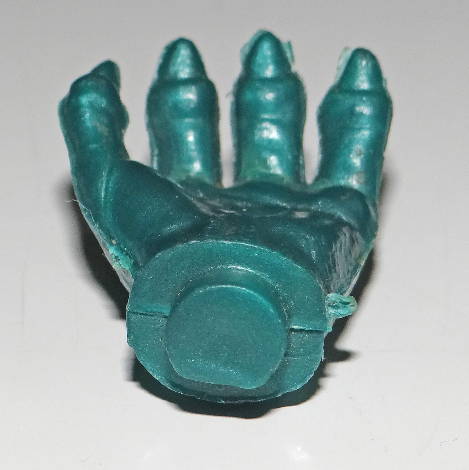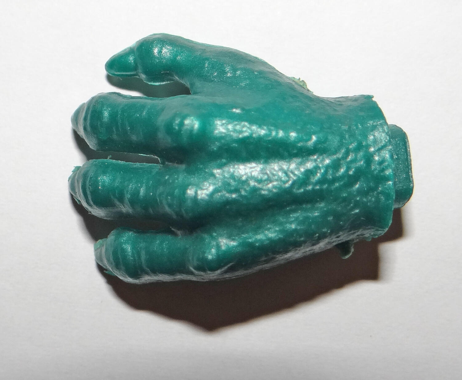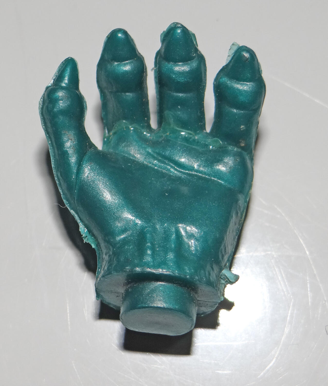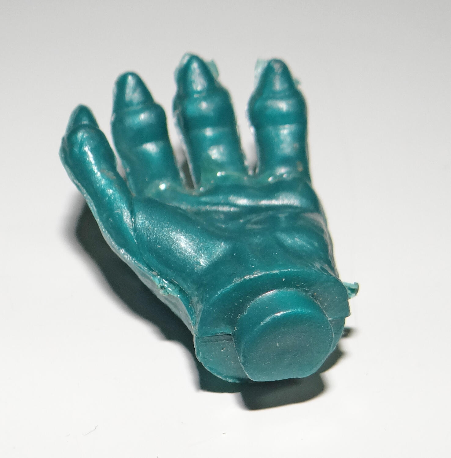 Here's a clip-on green hand or claw. Any help to id it would be awesome! Less than an inch long (same scale as a Marvel Legends build-a-figure I would say). Kind of shiny and textured with long sharp nails. Thanks for the help! |