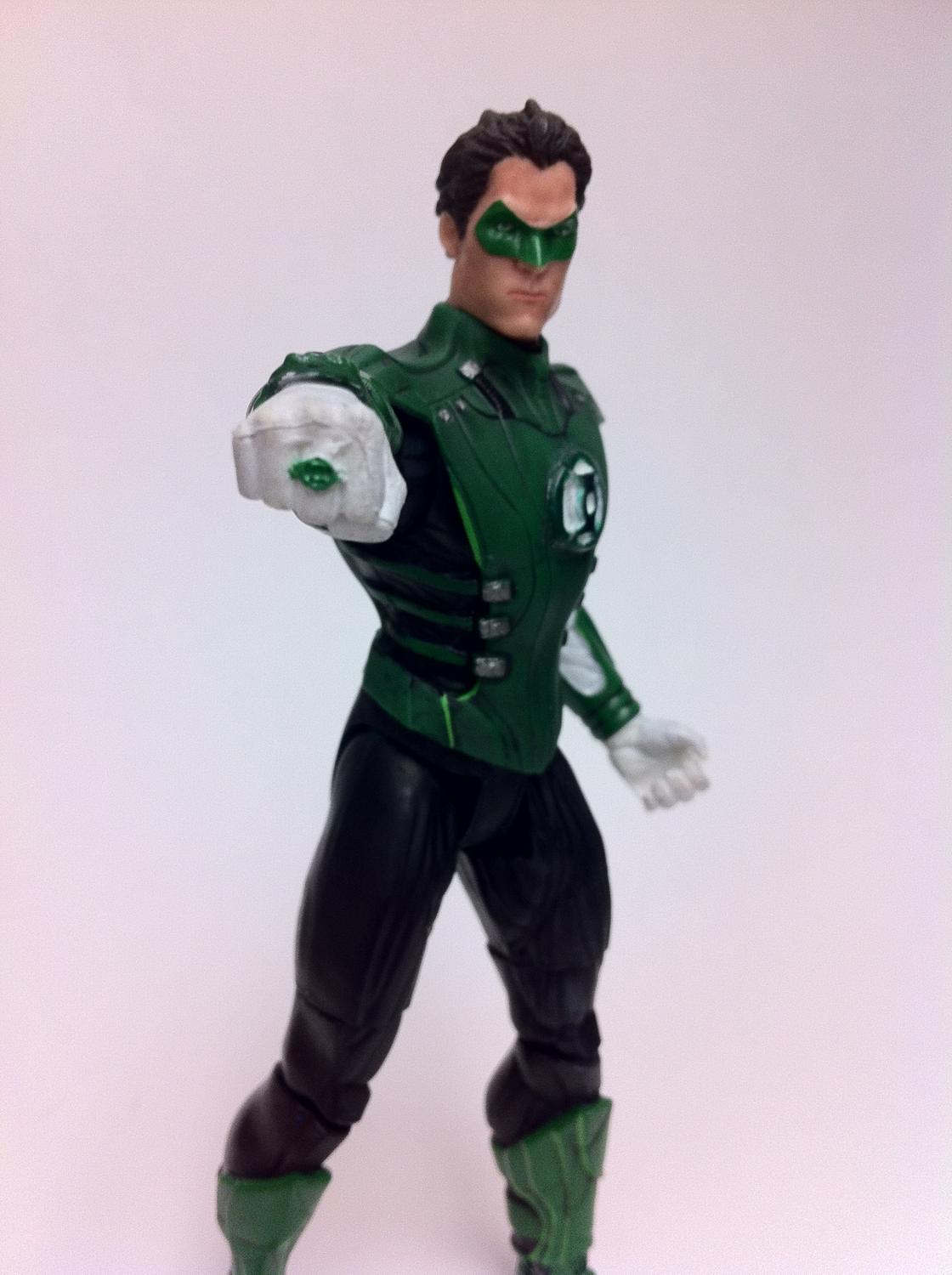 I wanted a Green Lantern with details. I used an Injustice figure and painted it to look like the classic costume.I didn't like how small his head look so I gave him Earth-2 Green Lantern. The Head didn't fit right so I had to cut it from the neck line then super glue it to the body. Fortunately the chest piece armor was able hide the rougher edges.