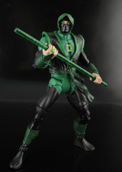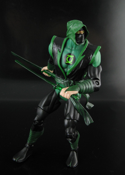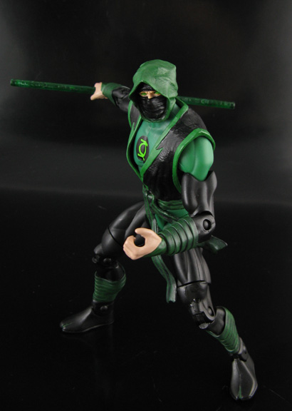Shou-Jen was made from any basic Green Lantern (or DCU) body, ML Hand Ninja modded head/tunic, Superman hands so he could hold things, and wrapped wrists/shins. His staff came from a Tron 2.0 figure, clear swords from some generic ninja toy and painted clear green. More pics here---> Green Lantern Shou-Jen |