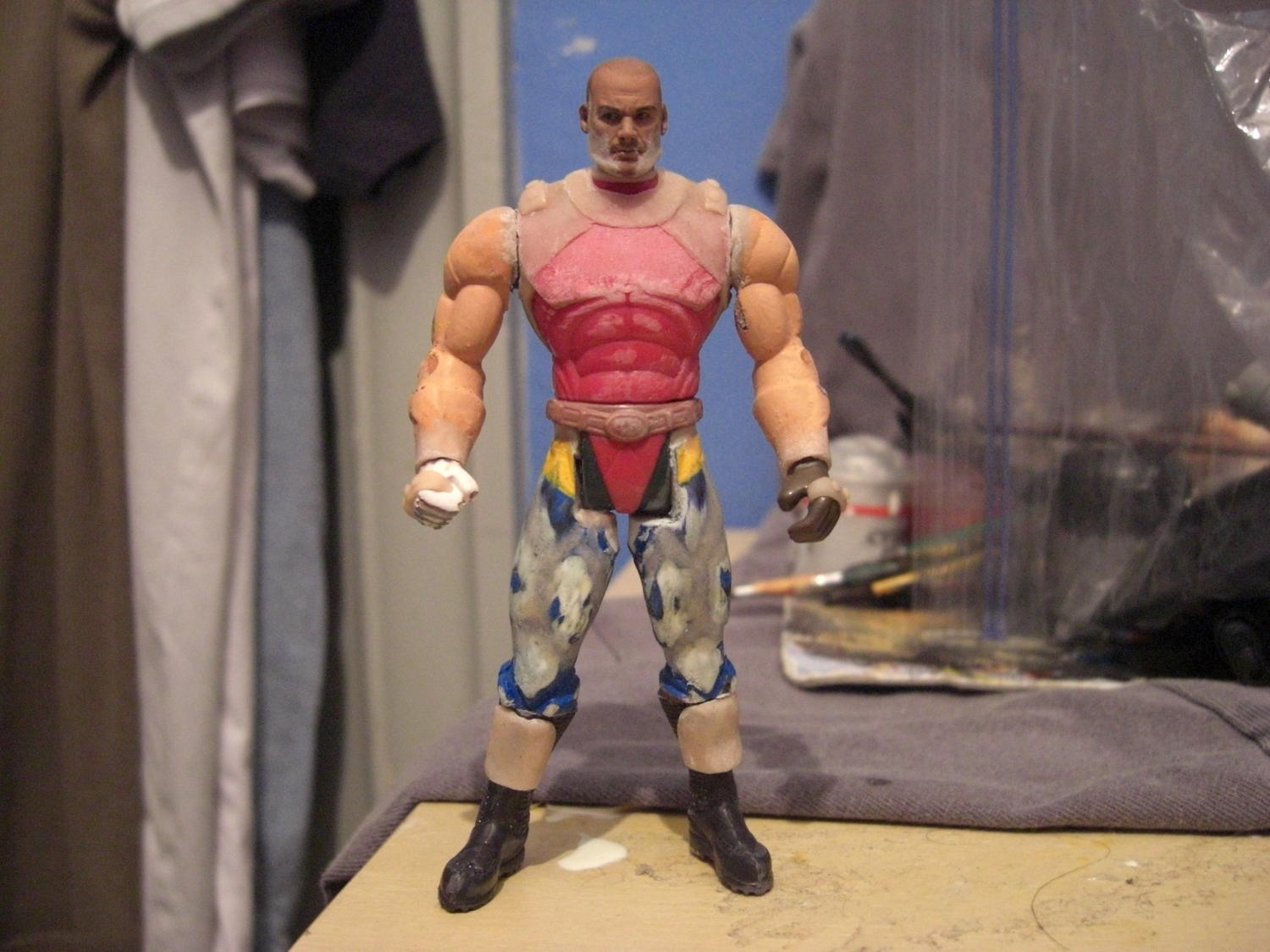 the whitish grey stubble you see there is actually sculpt to extend his jaw to X3 Juggernaut proportions. The head would have made a great Ares too though actually. I thought that myself also! Hes about 80% finished now. Ill post him in a few hours so keep an eye out.