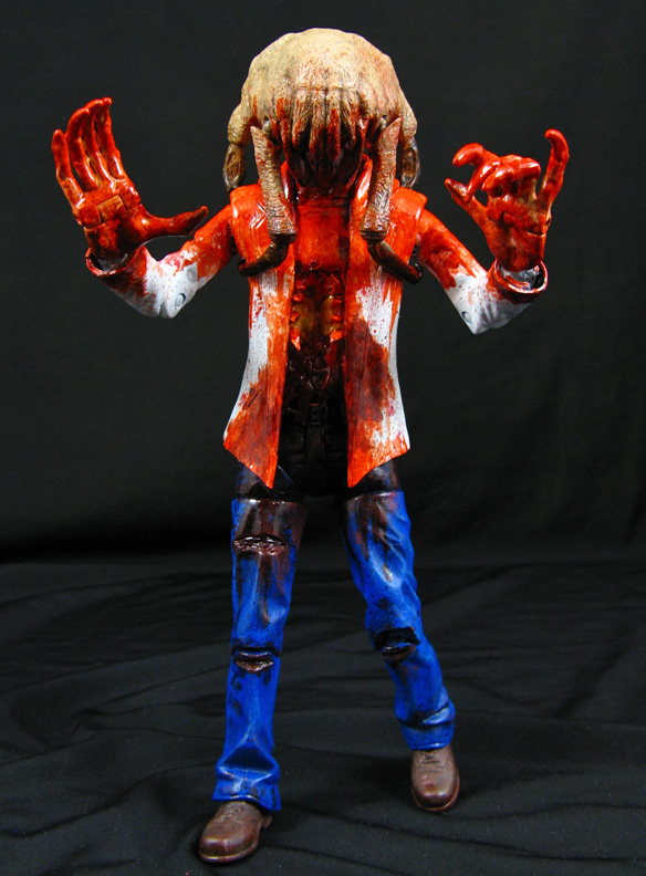 The Black Mesa research facility really has a problem with all sorts of alien beings roaming about, none so terrifying as the Headcrab Zombie however! Here I created a custom Headcrab Zombie figure from Half Life 2 using a NECA Heroes Peter Pertelli, headcrab accessory from Gordon Freeman, and Lady Deathstrike Marvel Legends hands. The headcrab Zombie's chest was hollowed out and sculpted lungs added as well as articulation added to the Headcrab's pincers so it could grasp on to its prey. Gordon Freeman was also repainted to resemble the blue HEV suit mod you can download and use online as well as his weapons to match!