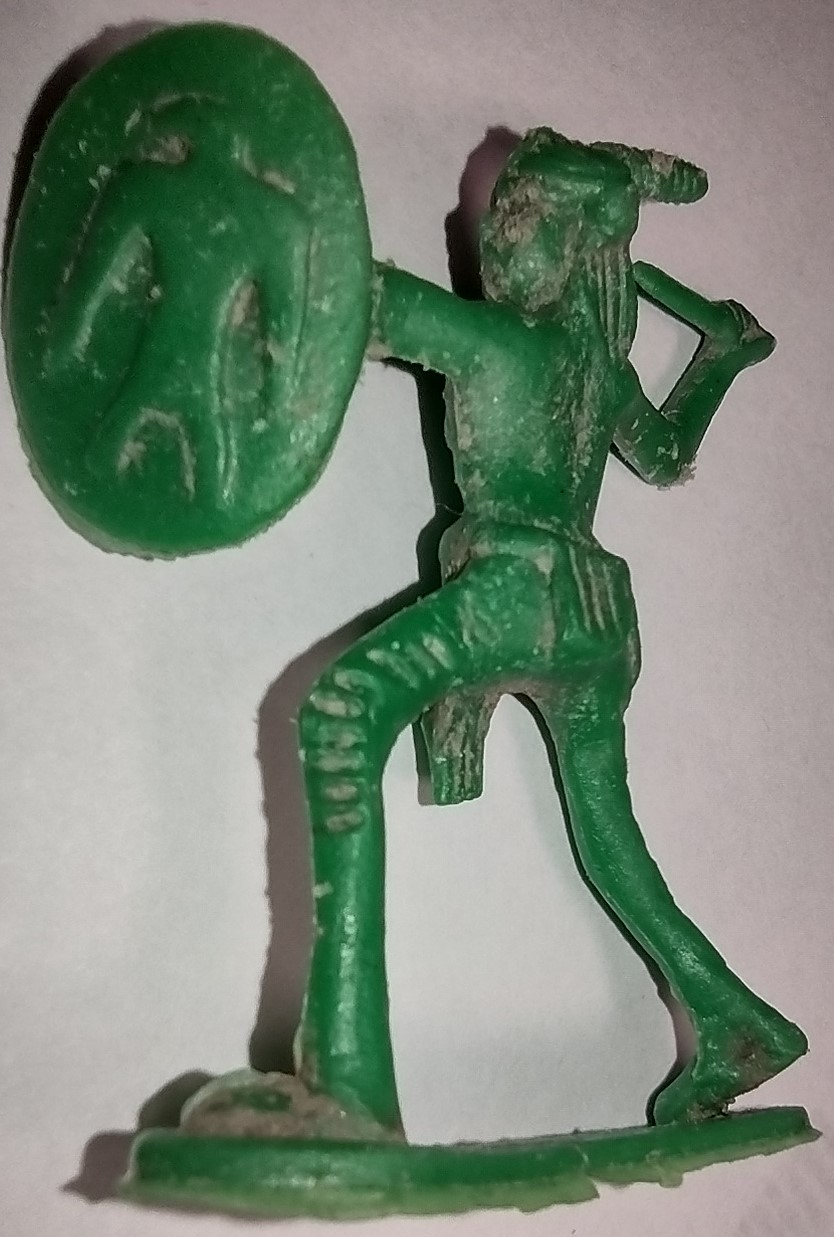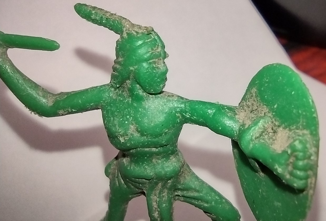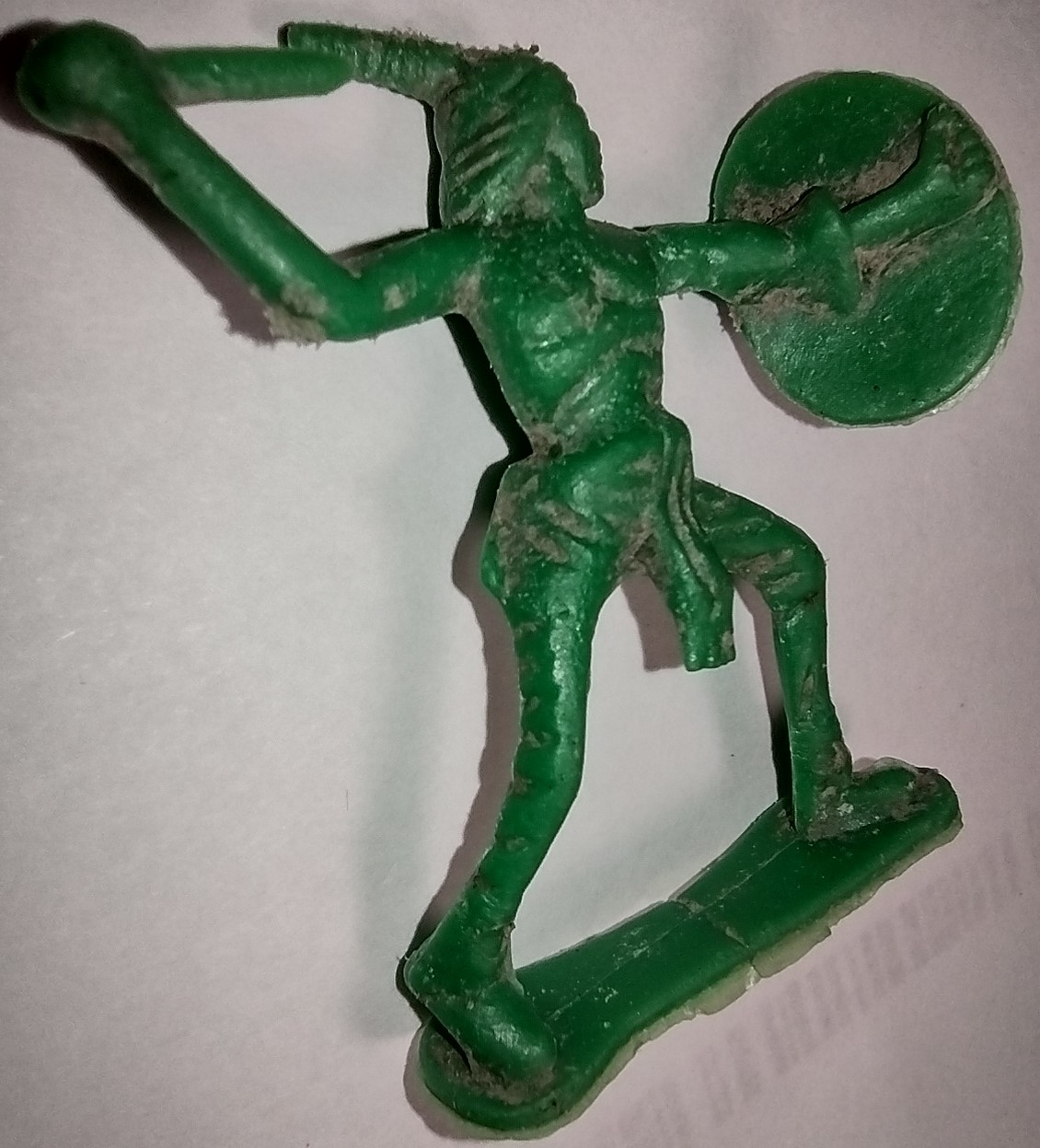 Came across the forum when researching this old plastic figure. It looks like it could be from an old "Cowboys and Indians" set. I dug it up the other day when we were putting in a patio. My house was built in 1950. It has "CHINA" on the bottom. I have searched the web and looked for similar ones on Ebay, but can't find one like it. It has unusually thin features. Any tips would be great on what set this is from or about how old it is would be appreciated! |