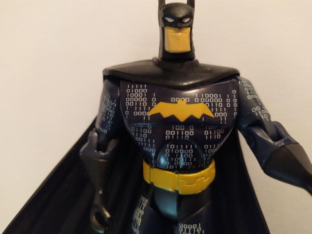 I've been collecting figures slowly over a number of years and usually I'm pretty good at finding specific names of action figures however I'm currently stuck on this one and I'm hoping someone can help me out. Ive looked through different websites and I can't seem to identify this Batman figure. It has binary code on the front. Any help would be greatly appreciated. Thanks Coops |