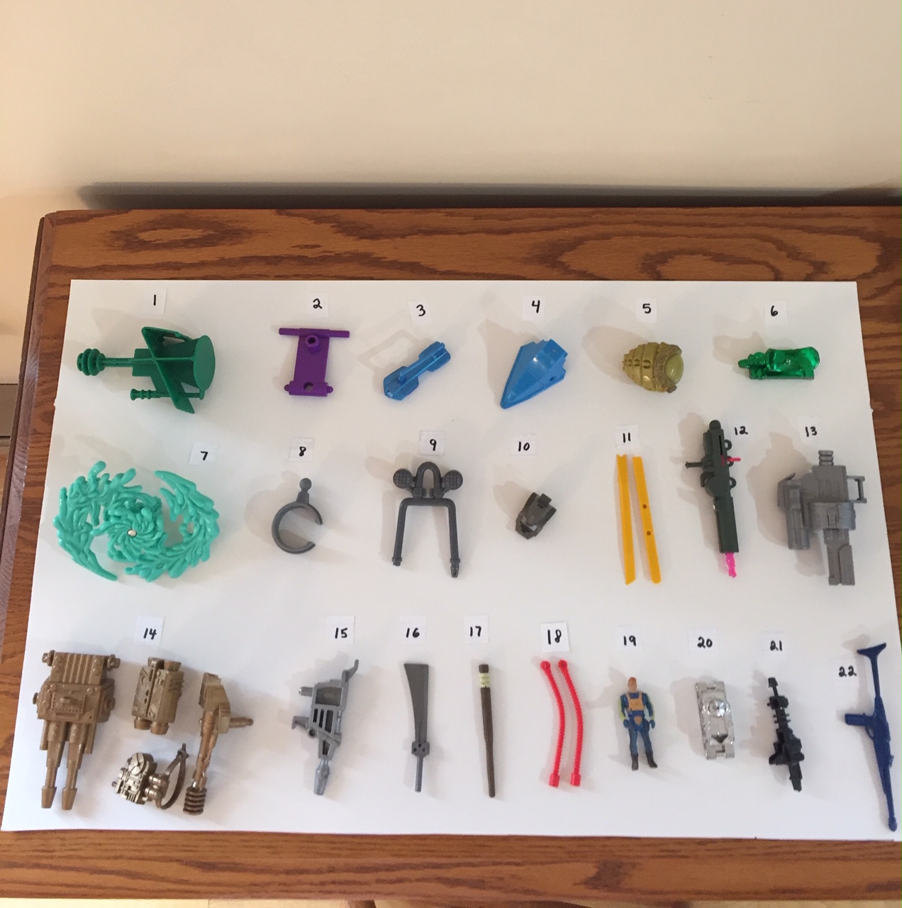 I hope someone figures out #7. It looks like it attaches to an arm and twirls. I have Iooked at all TMNTs and now don’t think it is one. Help!