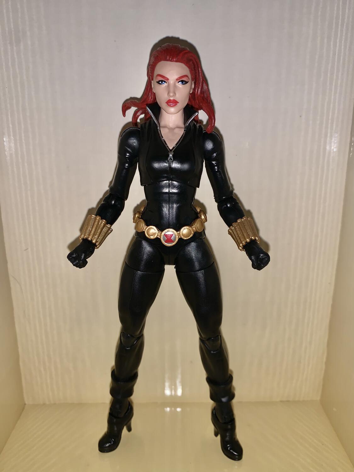 Parts include: motorcycle black widow torso and arms, deadly origins black widow cuffs and belt and head, boot cuffs from Typhoid Mary, legs from shriek, high heels from shiklah, fist from Emma frost.